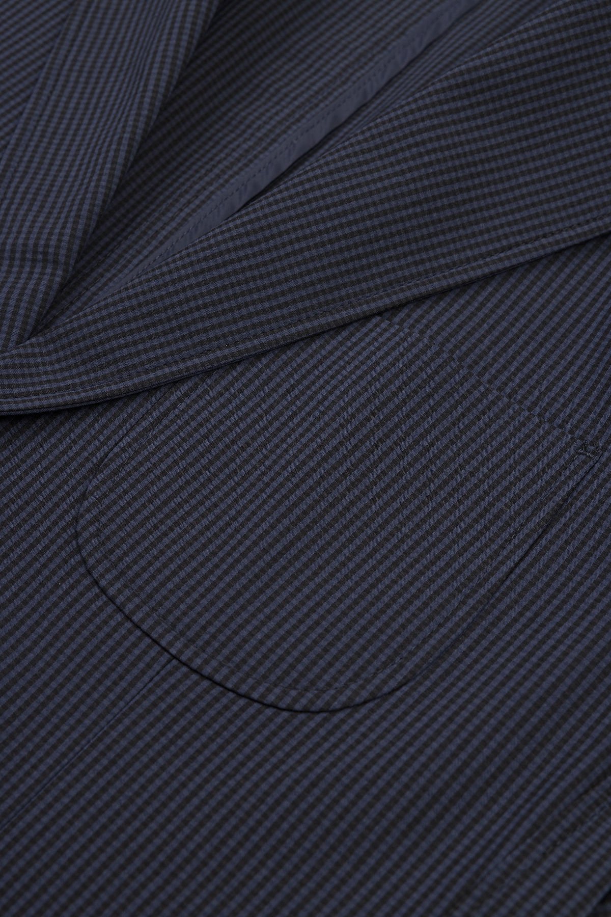 Kumaş yüzeyindeki ince kareli (check) desen, bu ceketi tek renkli üst giyimlerden ayırarak stilinize sofistike ve dinamik bir hava katar.
