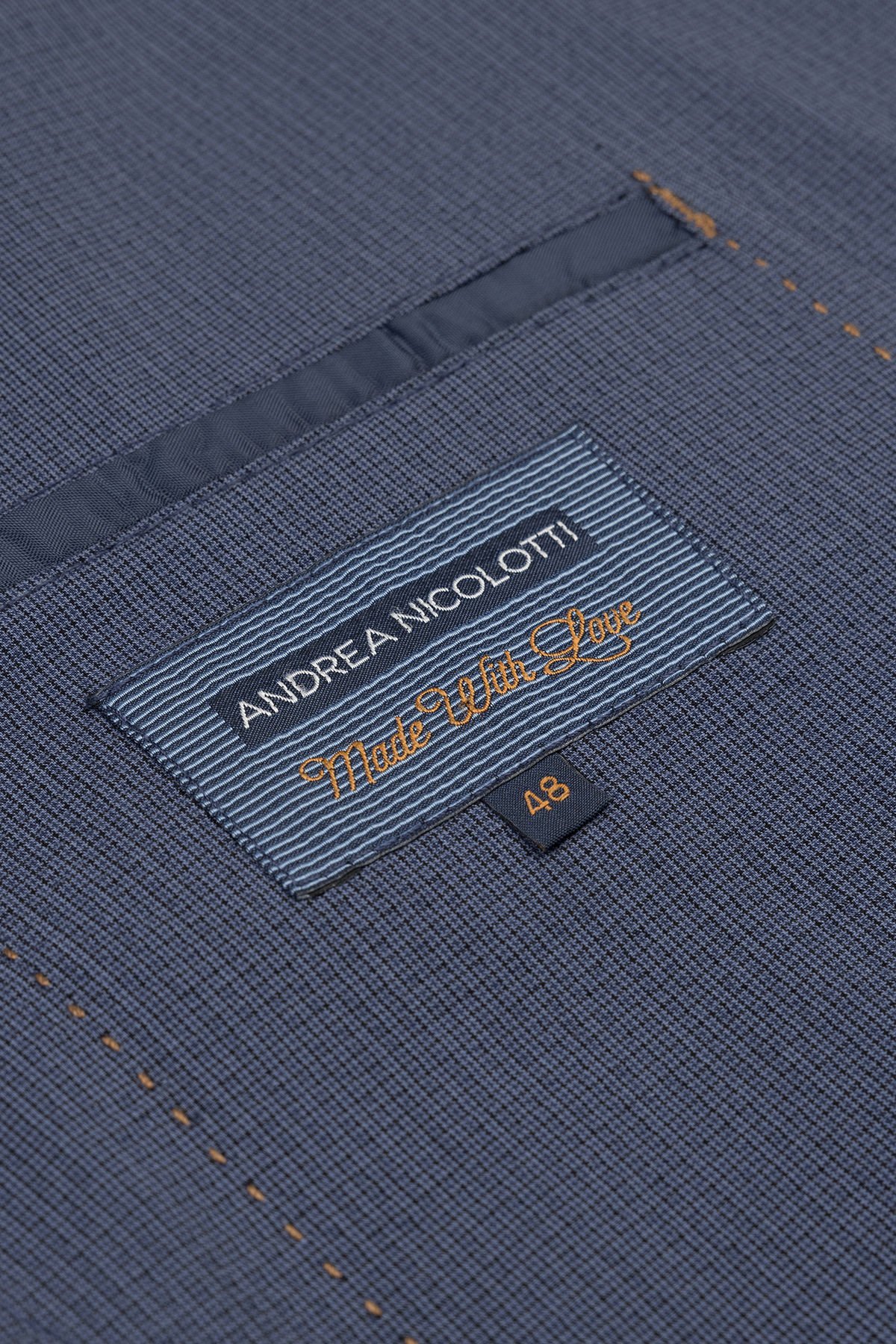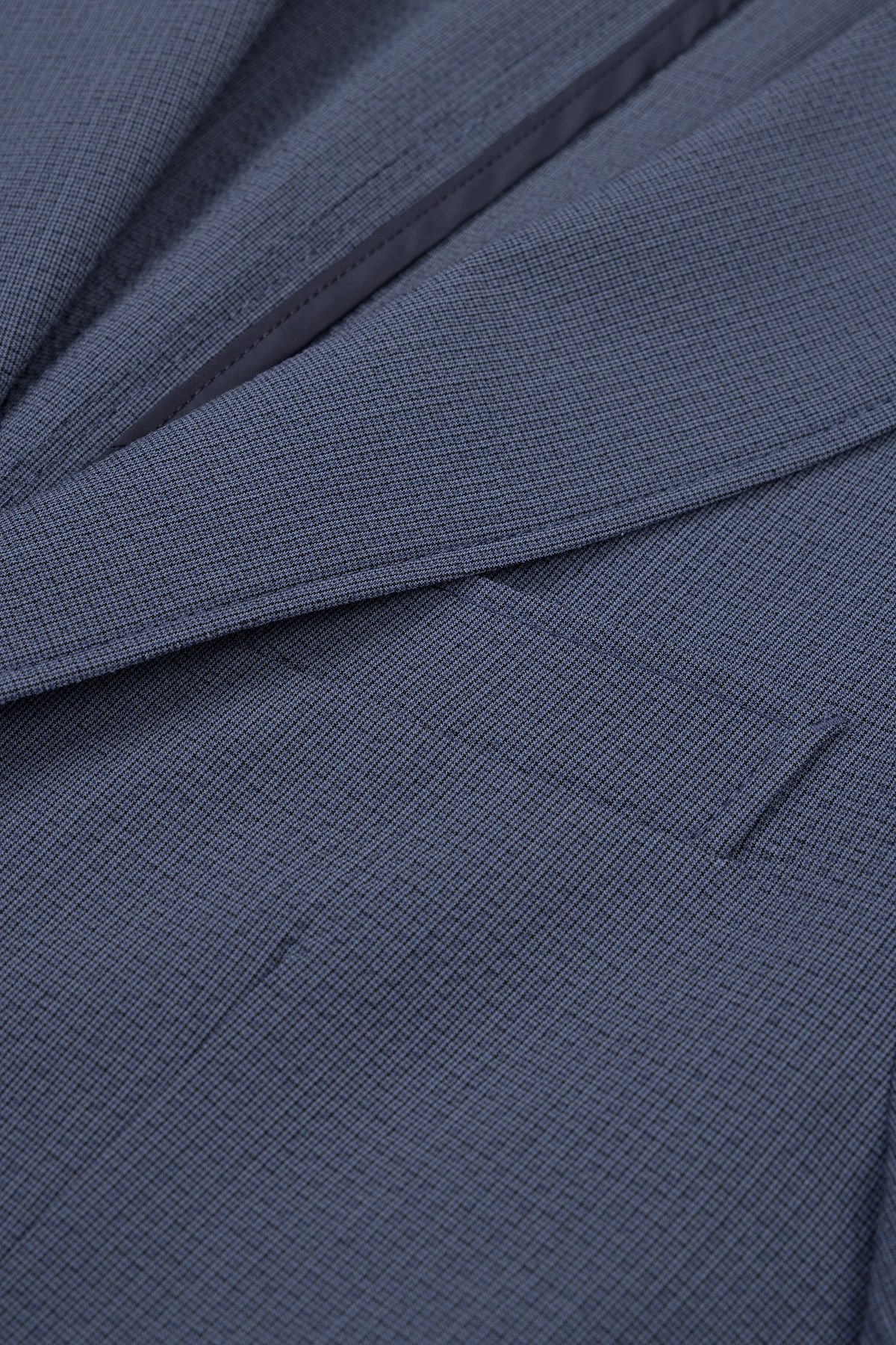Kumaş yüzeyindeki lacivert zemin üzerindeki ince mikro kareli (check) desen, bu ceketi tek renkli üst giyimlerden ayırarak stilinize sofistike ve dinamik bir hava katar.