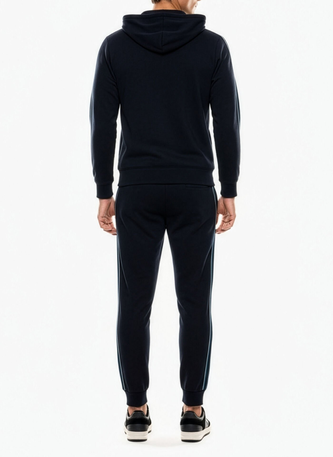 Modern ve konforlu görünümü bir arada sunan bu lacivert kapüşonlu eşofman takımı, günlük kullanım ve seyahatlerde maksimum rahatlık sağlar.