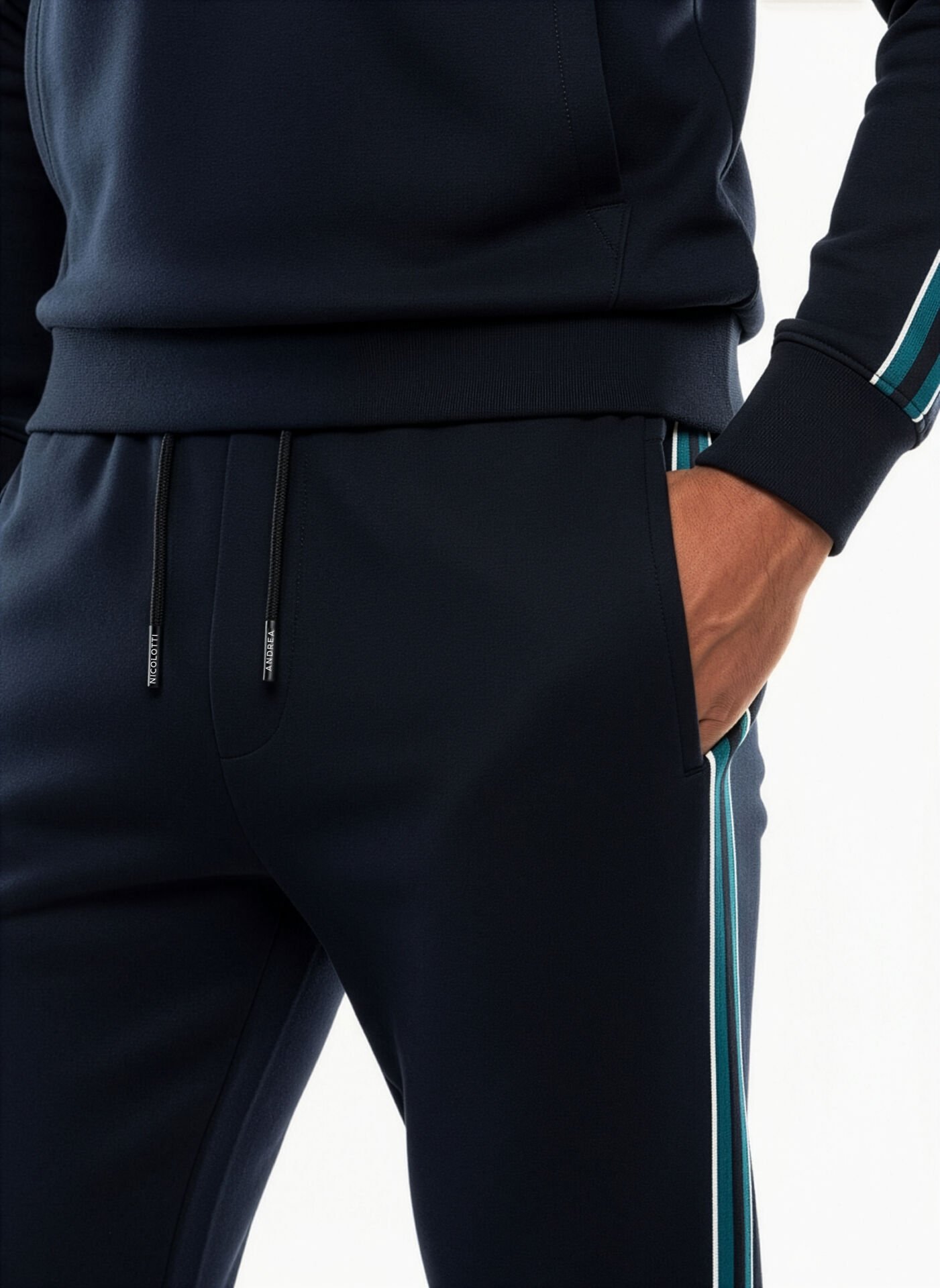 Yan şerit detayları, sportif tarzı ön plana çıkarırken, esnek kumaş yapısı vücuda uyum sağlar.