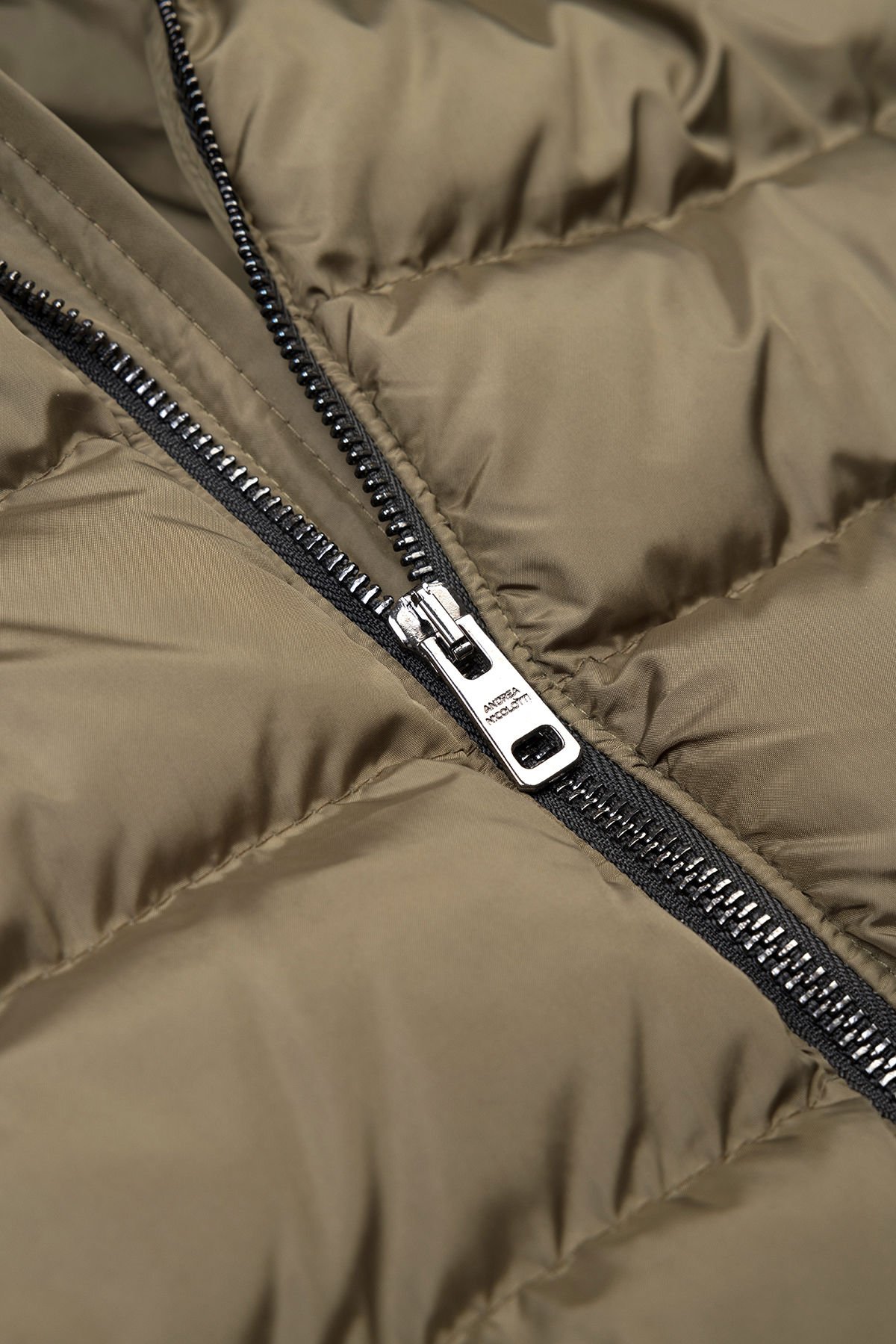 Bu haki şişme mont, casual ve aktif spor kombinler için idealdir. Doğal rengi, pek çok renk tonuyla kolayca uyum sağlar.