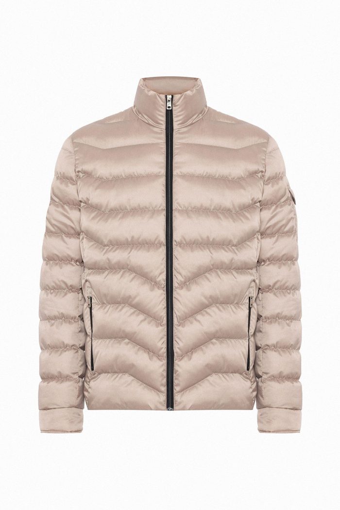 Erkek Bej Dik Yaka Regular Fit Şişme Mont