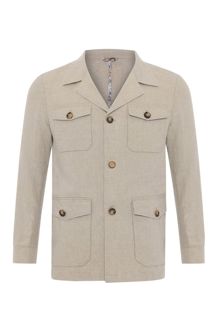 Erkek Keten Regular Fit Bej Yazlık Erkek Safari Ceket