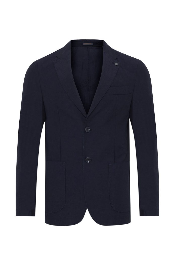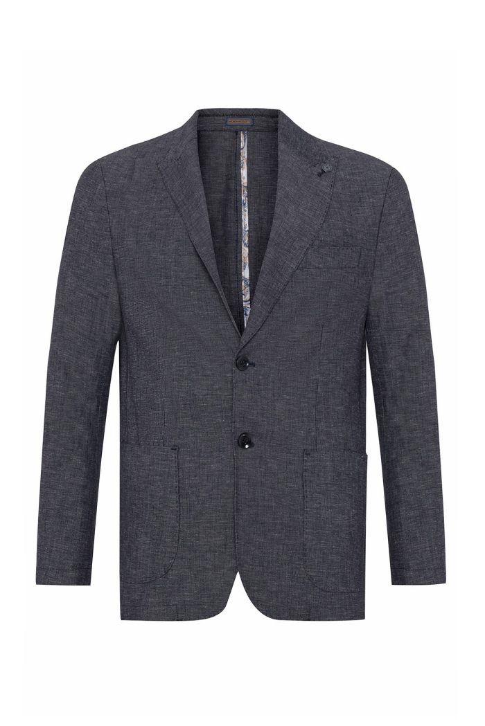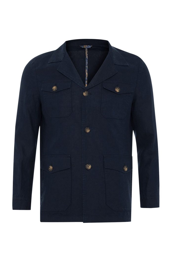 Erkek Lacivert Keten Regular Fit Yazlık Safari Ceket