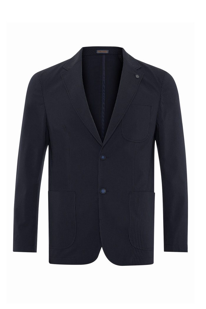 Erkek Lacivert Kareli Regular Fit Yazlık Ceket