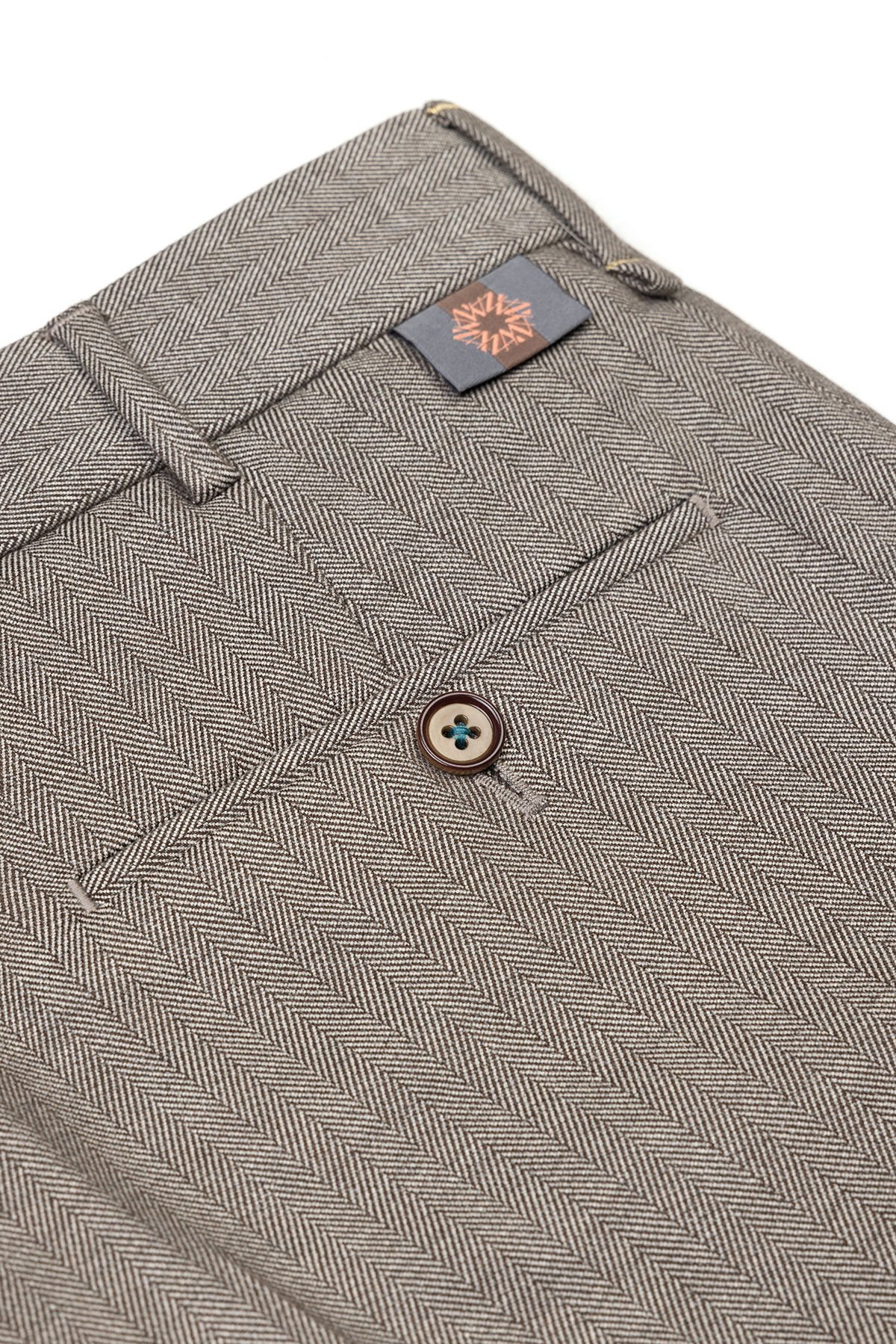 - Zarif Balık Sırtı Deseni: Kumaş yüzeyindeki ince ve zarif balık sırtı (herringbone) dokusu, pantolona klasik bir derinlik ve sofistike bir hava katar.