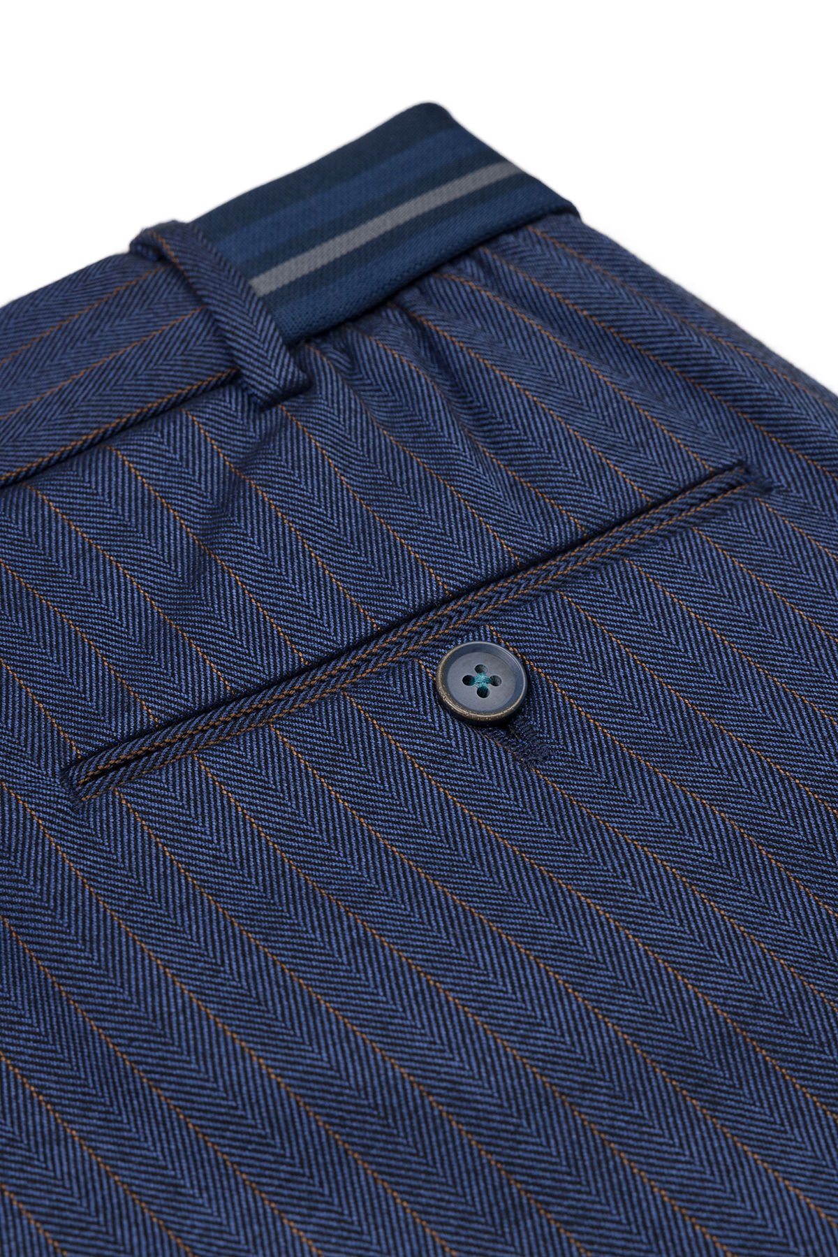 - Çizgili Desen: Lacivert zemin üzerindeki ince çizgiler, pantolona derinlik ve dinamizm katarak sofistike bir stil vurgular.