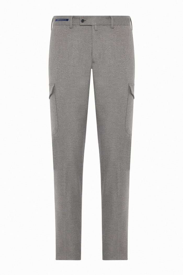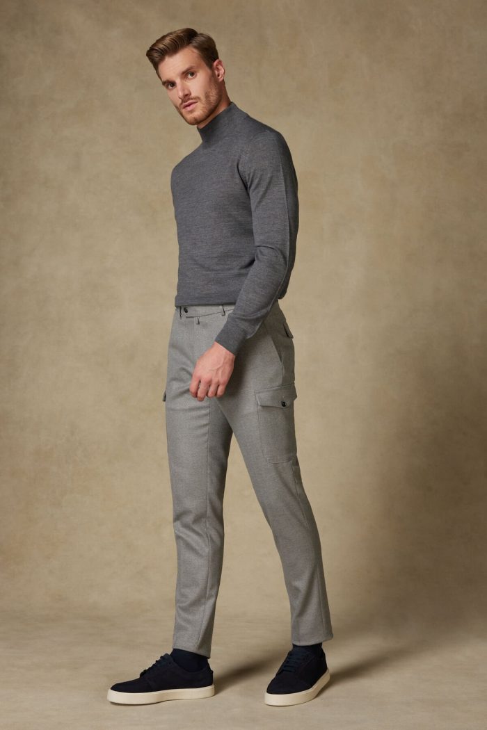 Hem günlük şehir stiline hem de modern ofis tarzına uyum sağlayan regular fit erkek kumaş pantolon. Polyester ve viskon karışımlı dokusu yumuşak ve dökümlü bir yapı sunarken, elastan payı hareket özgürlüğü sağlar. Yan cep (cargo) detayı, pantolona dinamik ve modern bir karakter kazandırır. Açık gri nötr ton, pek çok renk ve üst giyim ile kolayca kombinlenebilir.