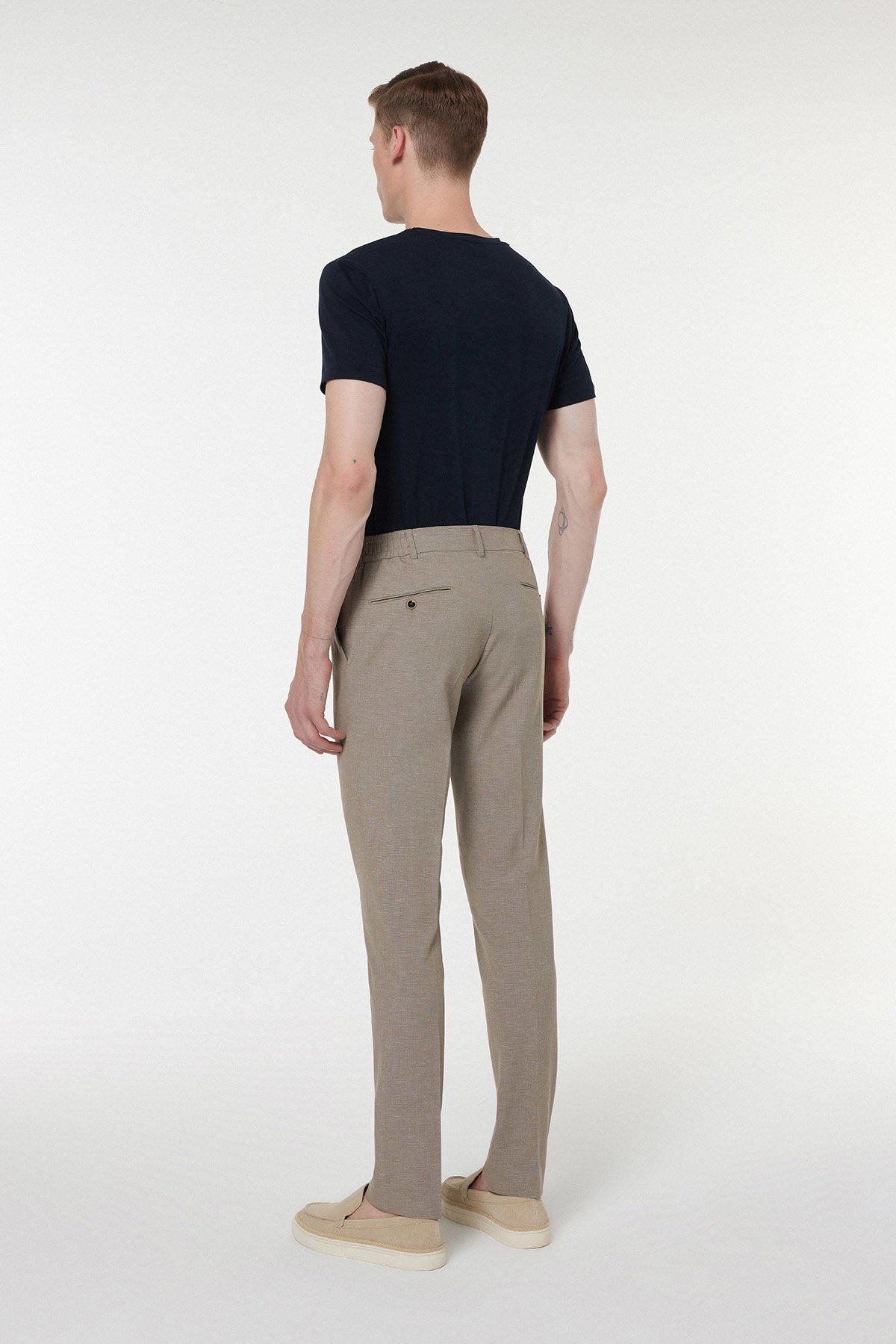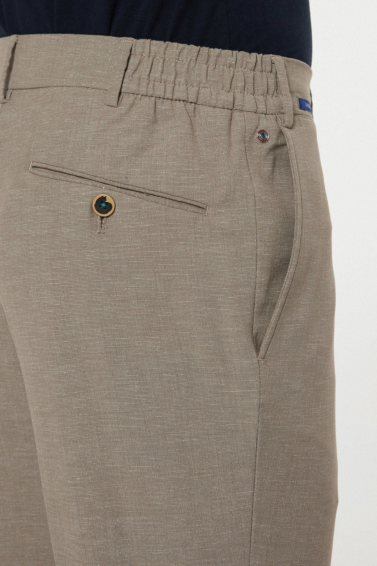 Bej rengin nötr ve zamansız tonu, pantolonu hem resmi hem de casual ortamlar için mükemmel bir temel parça yapar. Kemer içi gizli lastik detayı ise rahatlığı maksimize eden ek bir konfor özelliğidir.