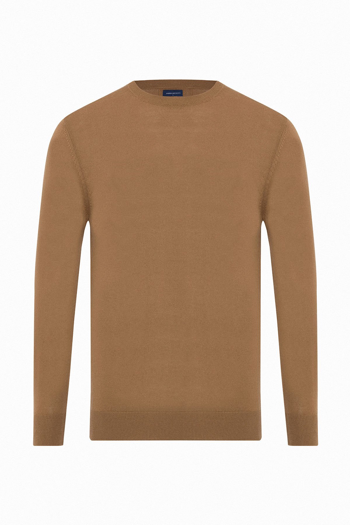 Bu camel rengindeki bisiklet yaka triko, %50 Yün ve %50 Akrilik karışımı sayesinde yumuşak, sıcak tutan ve dayanıklı bir yapıya sahiptir.