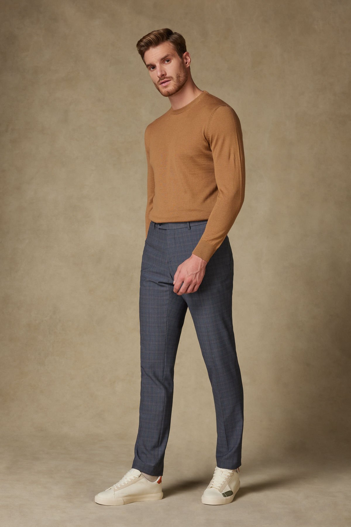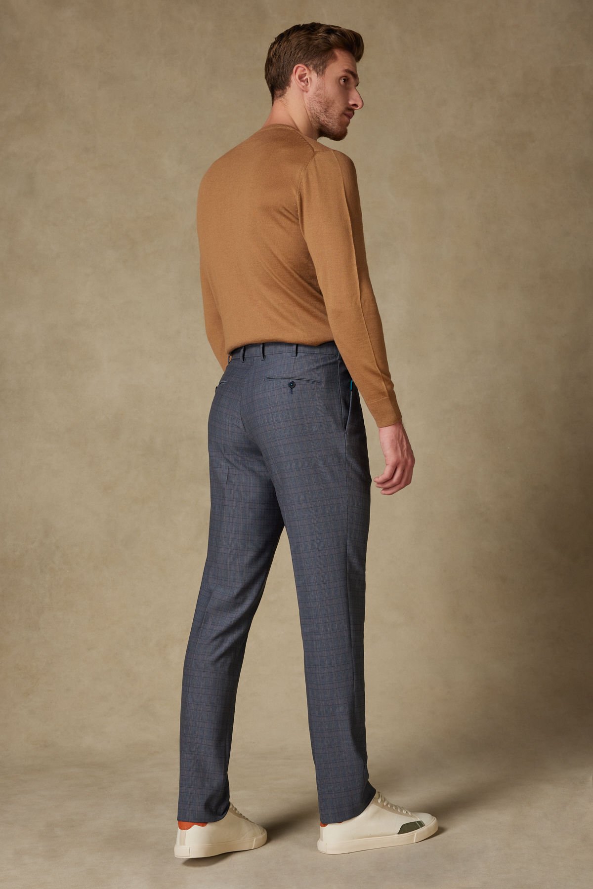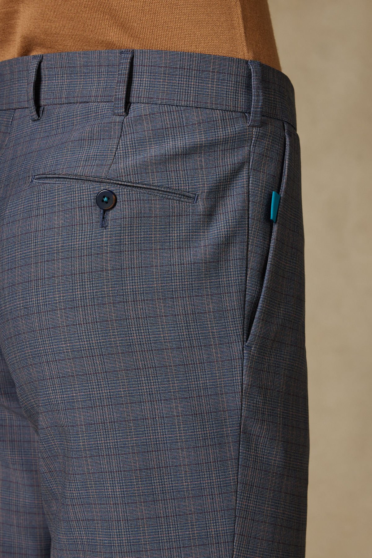 Hem günlük kullanım hem de ofis stili için ideal olan regular fit erkek kumaş pantolon. Polyester ve viskon karışımlı yumuşak dokusu konfor sağlarken, elastan oranı hareket özgürlüğü sunar. Koyu gri zemindeki modern kare desen, ürüne karakterli ve dengeli bir şıklık kazandırır. Nötr tonları sayesinde birçok üst giyim ve ayakkabı ile hızlıca kombinlenebilir.