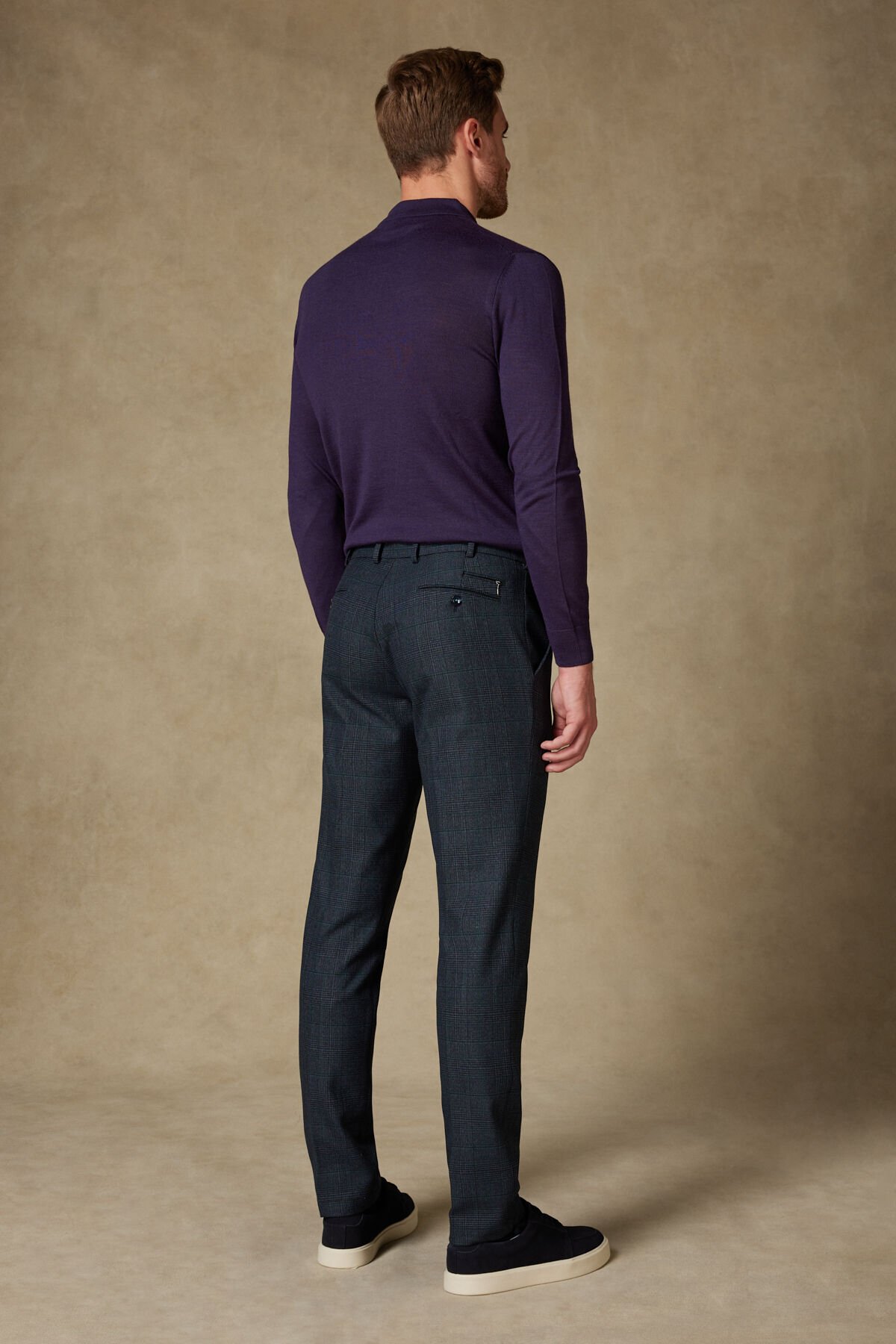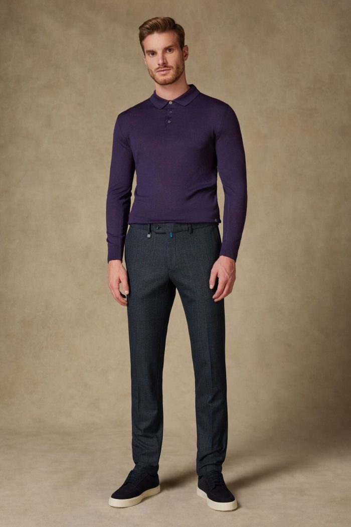 Günlük kullanımdan iş stiline kadar çok yönlü bir görünüme sahip erkek kumaş pantolon. Polyester ve viskon karışımlı kumaşı ile yumuşak bir doku sunarken, yün içerik sıcaklık ve form bütünlüğü sağlar. Elastan payı sayesinde rahat hareket imkanı tanır. Regular Fit kesimi ile vücuda oturur ancak rahatsız etmez; gün boyu konfor sağlar. Koyu gri ton üzerinde modern kare desen, pantolona karakterli ve şık bir duruş katar.