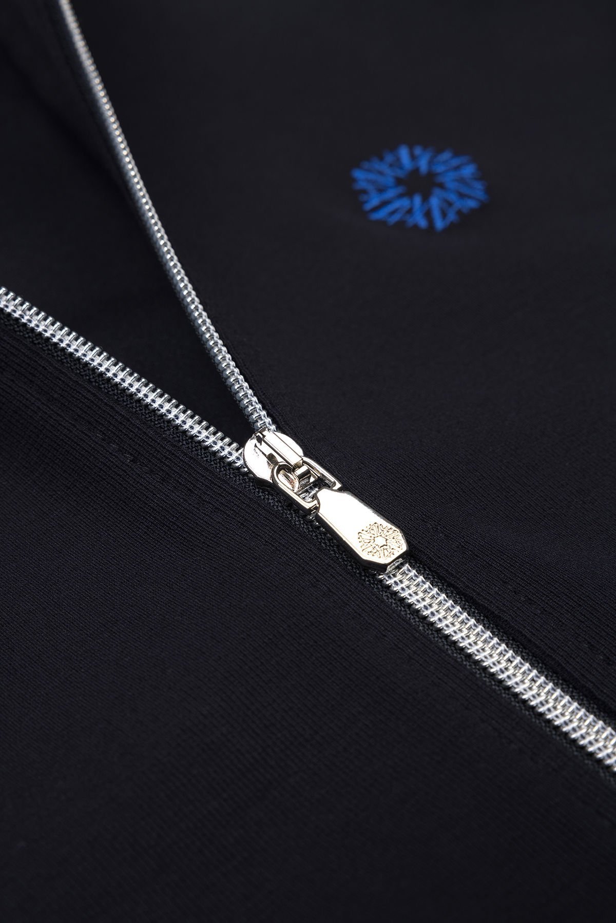 | Üst Detay | Tam Boy Metal Fermuar, Dik Yaka, Ribanalı Manşetler |
