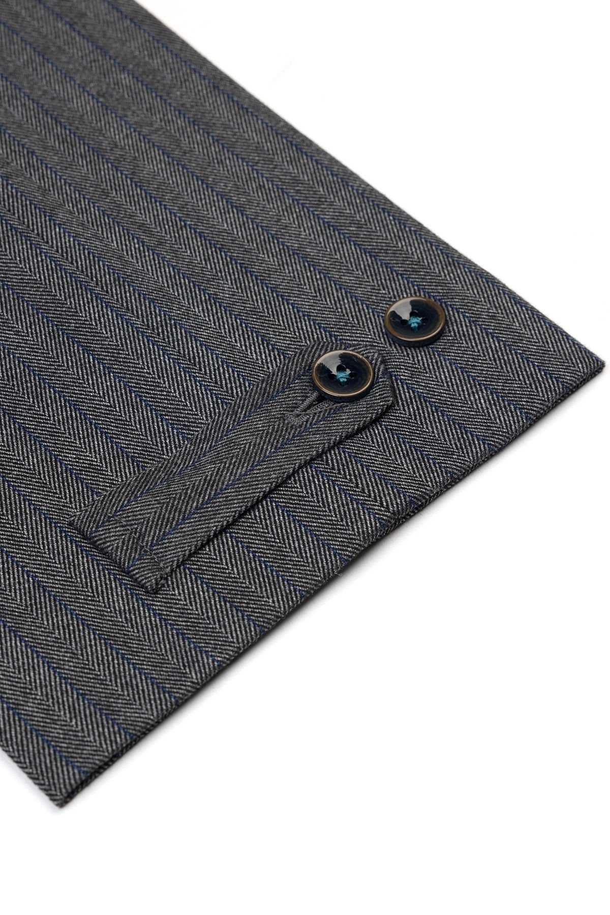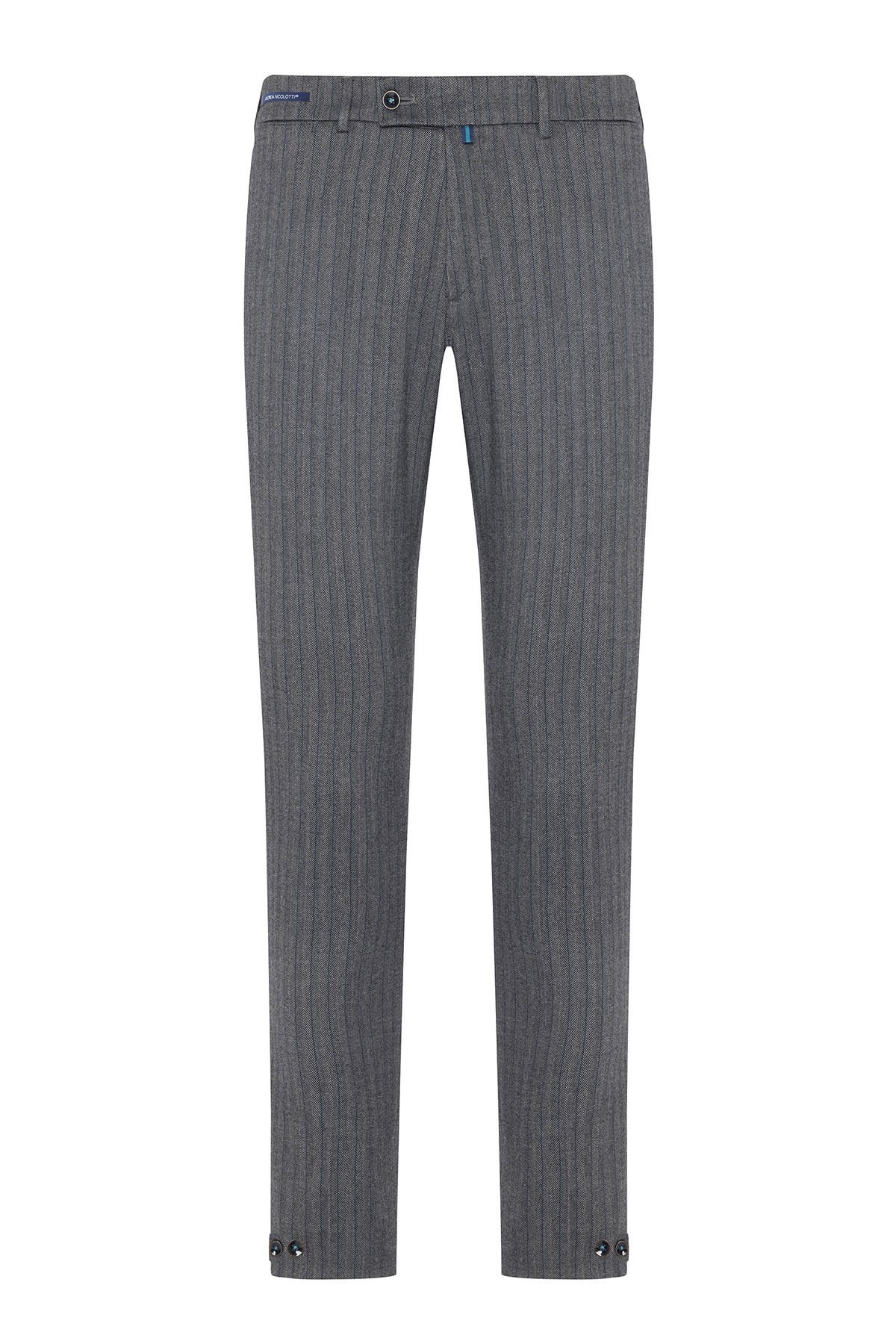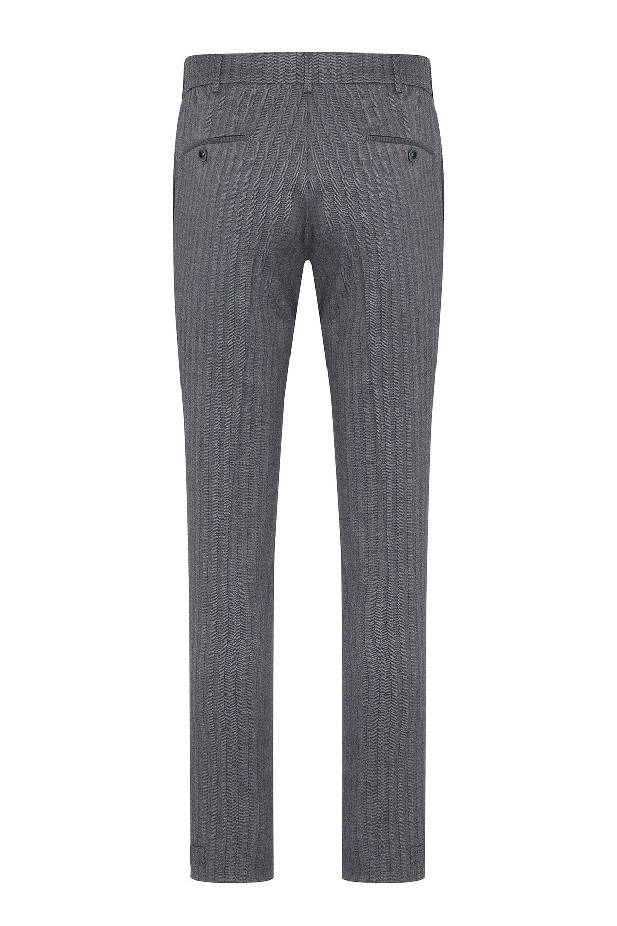 - Çizgili Desen: Lacivert zemin üzerindeki ince çizgiler, pantolona derinlik ve dinamizm katarak sofistike bir stil vurgular.