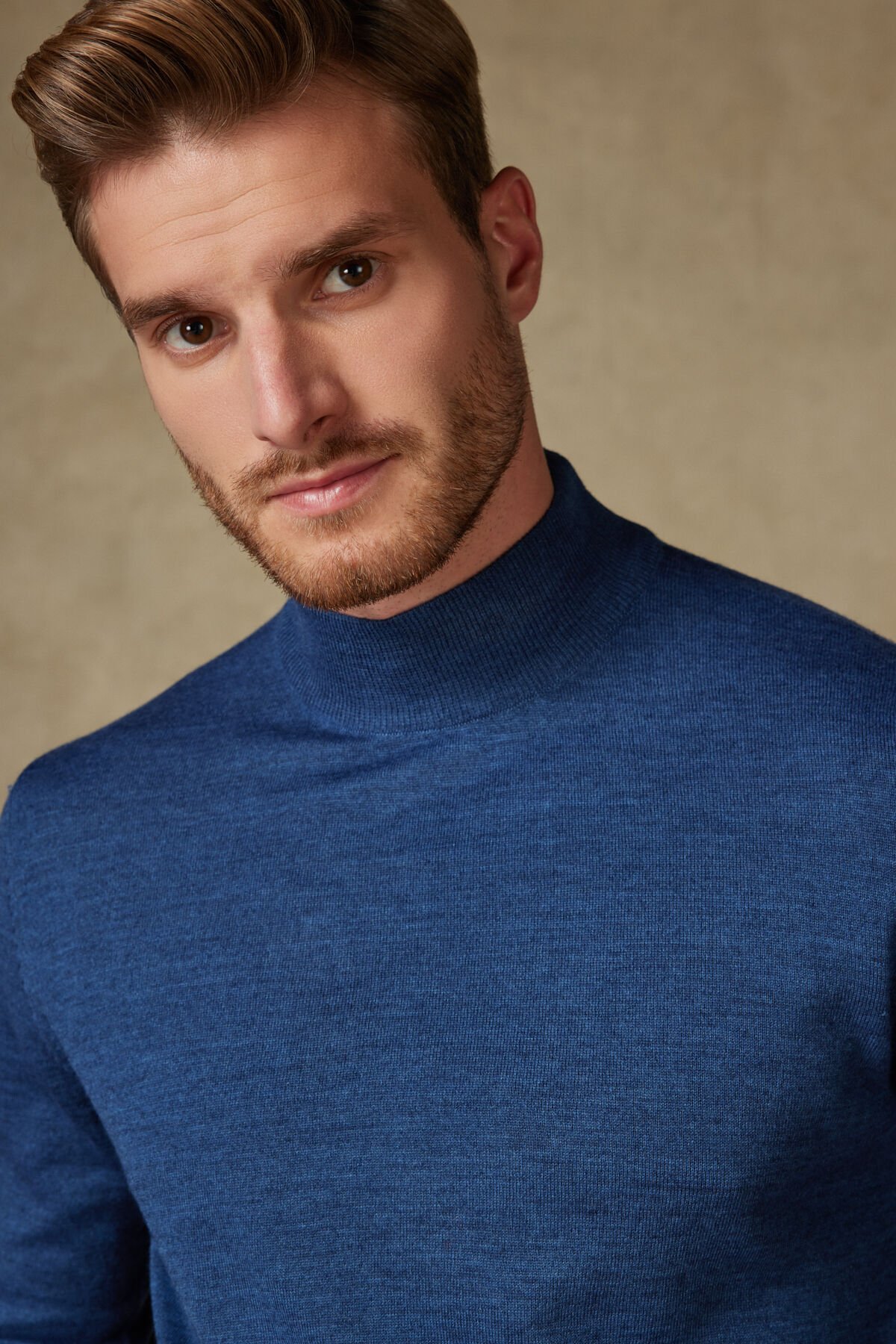 Bu canlı mavi tonlarındaki yarım balıkçı yaka triko, %50 Yün ve %50 Akrilik karışımı sayesinde yumuşak, sıcak ve formunu koruyan bir yapı sunar. Yün, doğal sıcaklık ve nefes alabilirlik sağlarken, akrilik karışımı trikonun hem konforunu hem de bakım kolaylığını artırır. Yarım balıkçı yaka kesimi, modern ve şık bir görünüm sunar. İnce örgü yapısı, spor veya klasik ceketlerin altında rahatlıkla kullanılabilir.