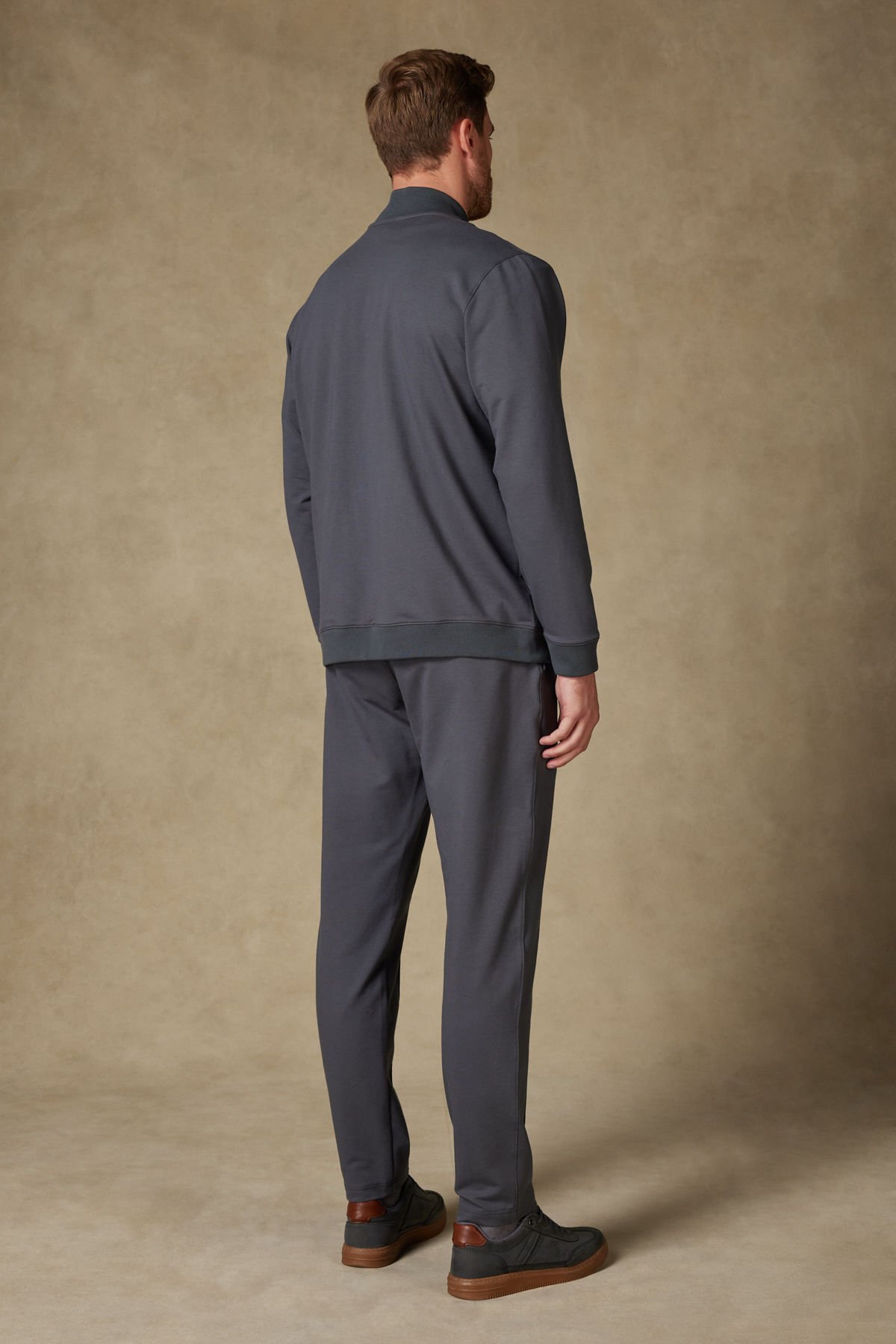 Modern kesimi ve konforlu yapısıyla günlük stilinize kolayca uyum sağlayacak füme renkli eşofman takımı. Takımın fermuarlı üst kısmı ve alt eşofman pantolonu, esnek kumaşı sayesinde gün boyu rahat bir kullanım sunar. Sade tasarımı ve füme rengin asaleti, ürünü spor ve casual kombinler için ideal bir parça haline getirir. Eşofman üstündeki minimal logo detayı, şıklığı tamamlar.
