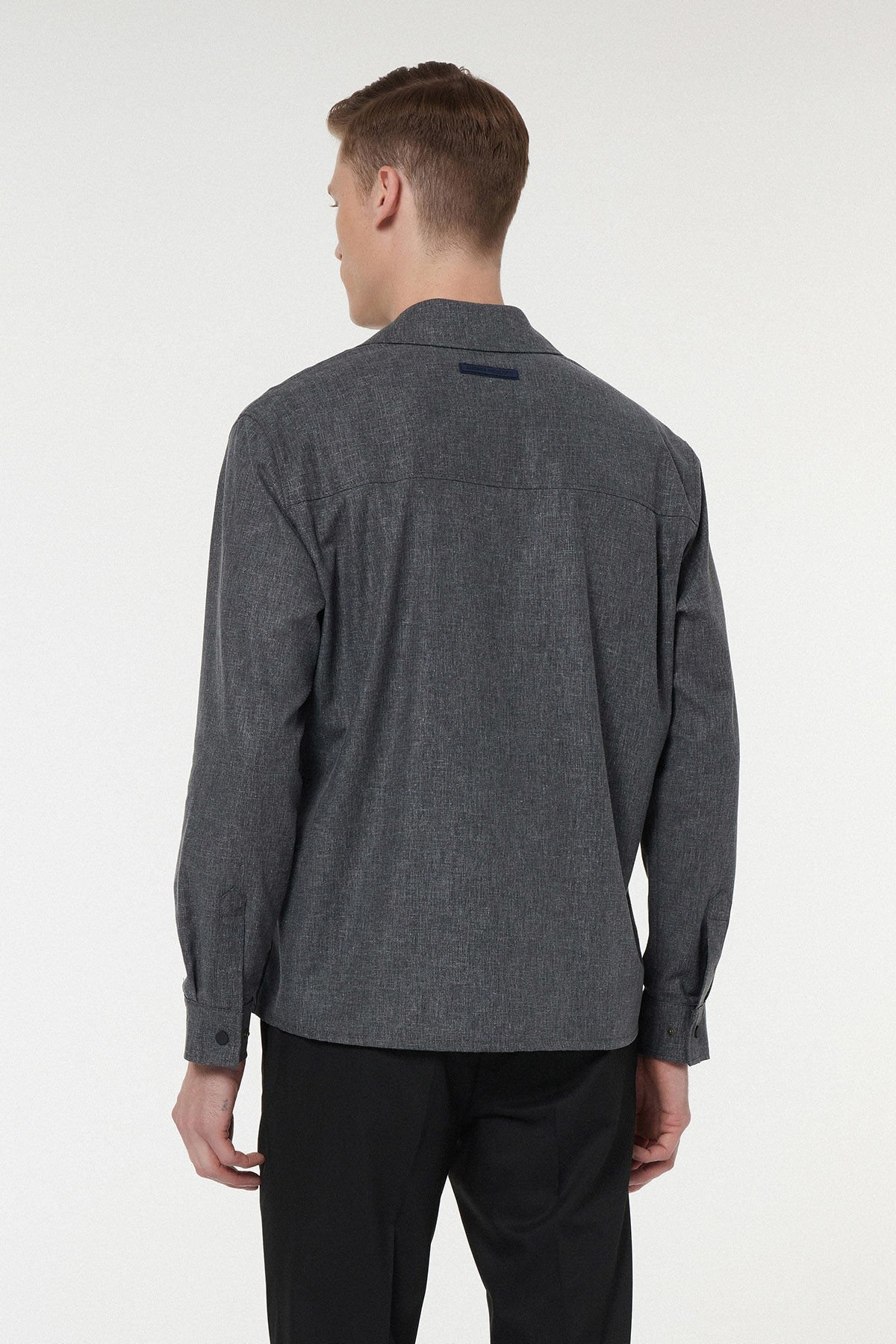 Modern gardıroplar için tasarlanmış, çok fonksiyonlu bir dış giyim parçası. Klasik gömlek yakasını metal fermuar detayıyla birleştiren bu ceket gömlek, sade ve sofistike bir duruş sunar. Kumaşının yüksek keten içeriği, füme renginin ağırlığına rağmen mükemmel nefes alabilirlik sağlarken; polyester ve elastan karışımı, ürüne tok bir form ve kırışmaya karşı direnç kazandırır. Regular Fit kalıbı sayesinde bir blazer ceket kadar şık, bir gömlek kadar rahattır. Mevsim geçişlerinin ve ofis ortamlarının vazgeçilmez katmanlama parçasıdır.