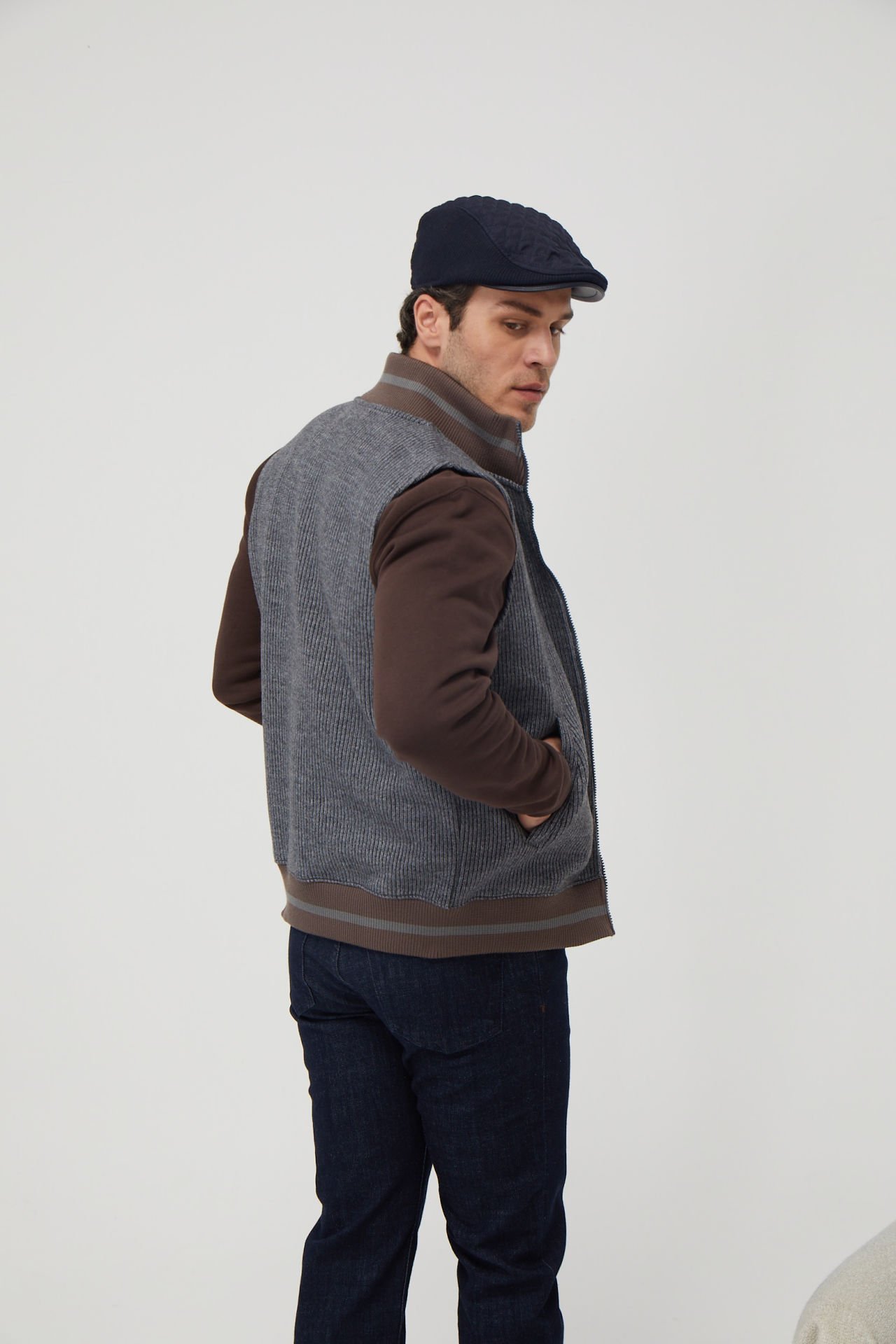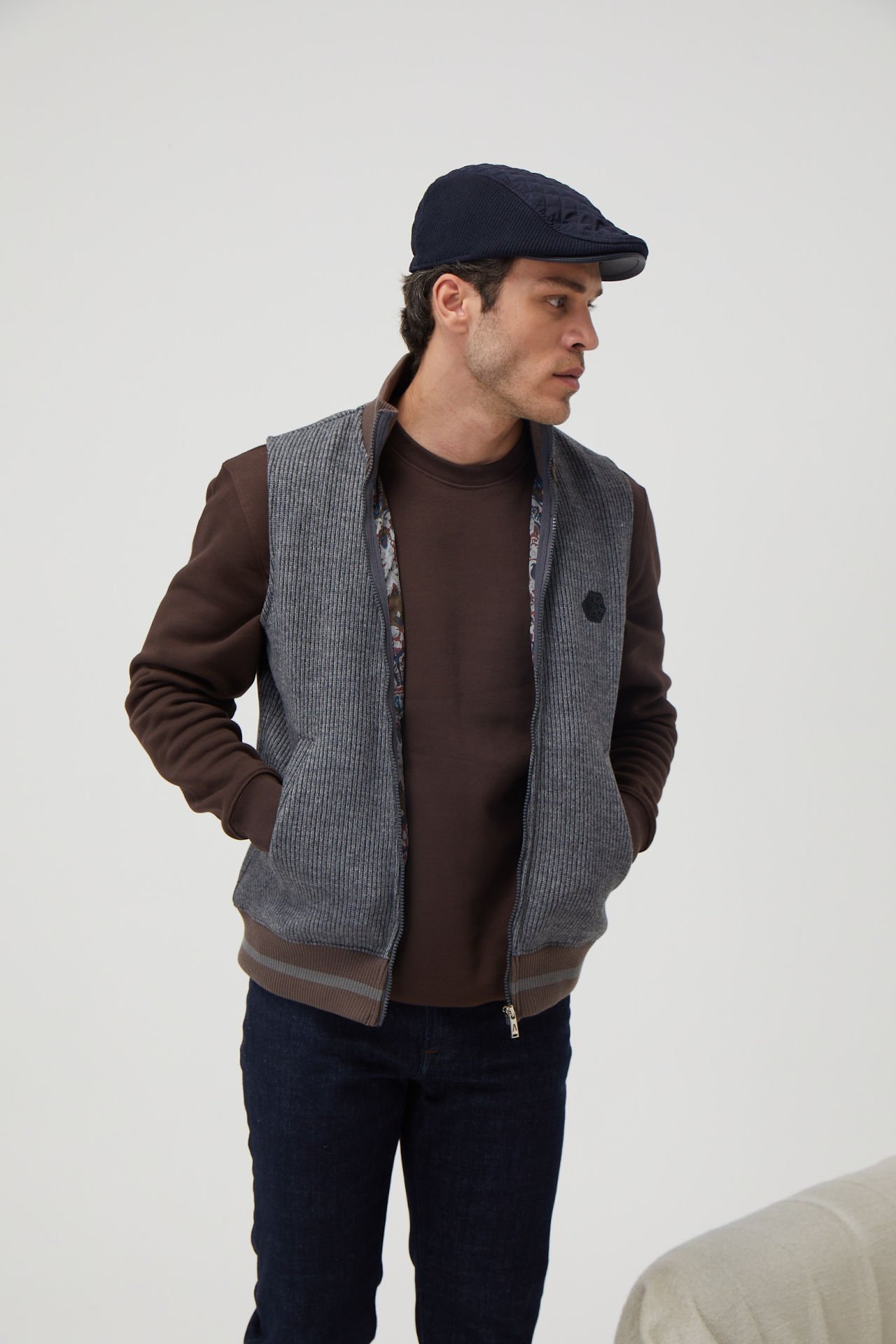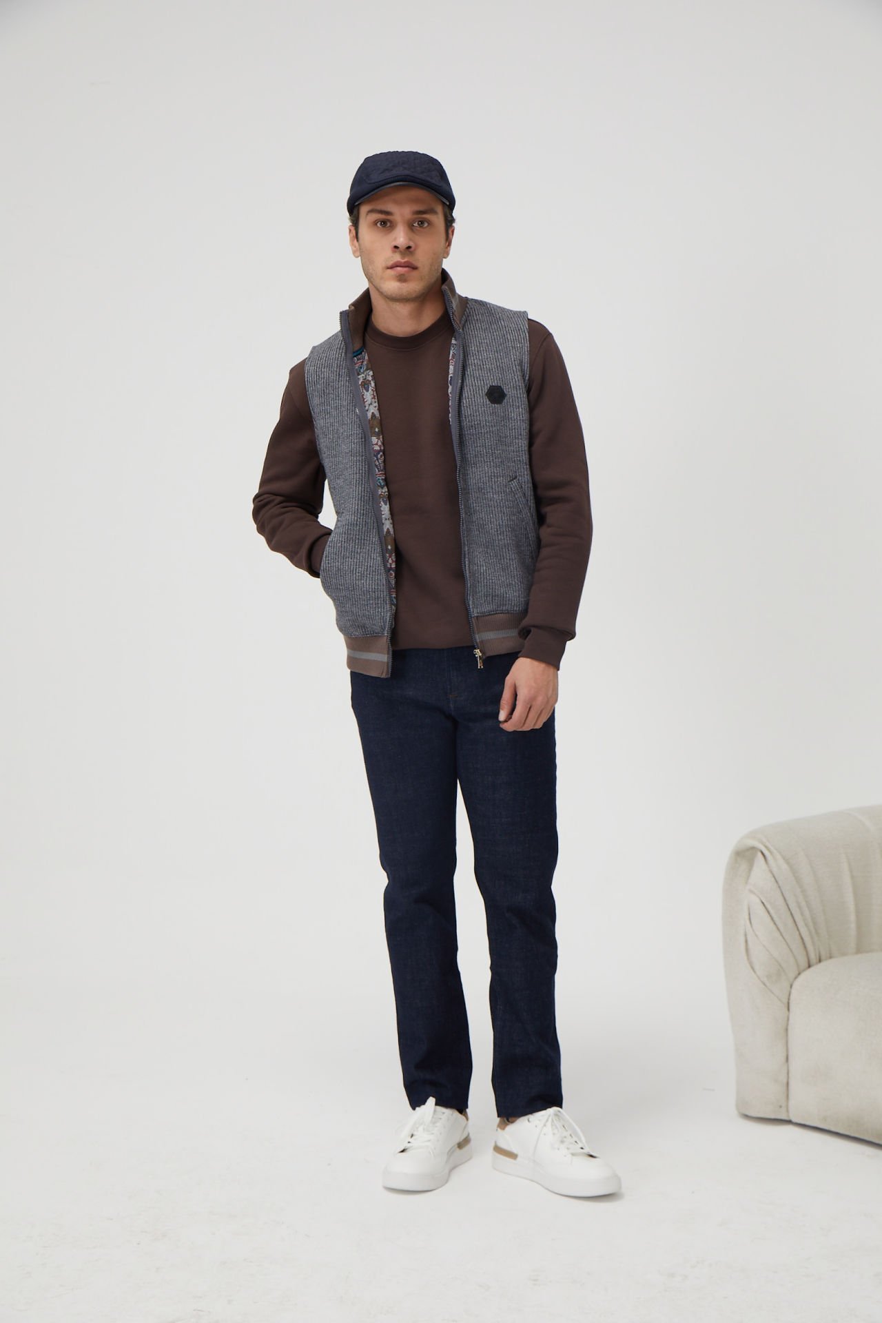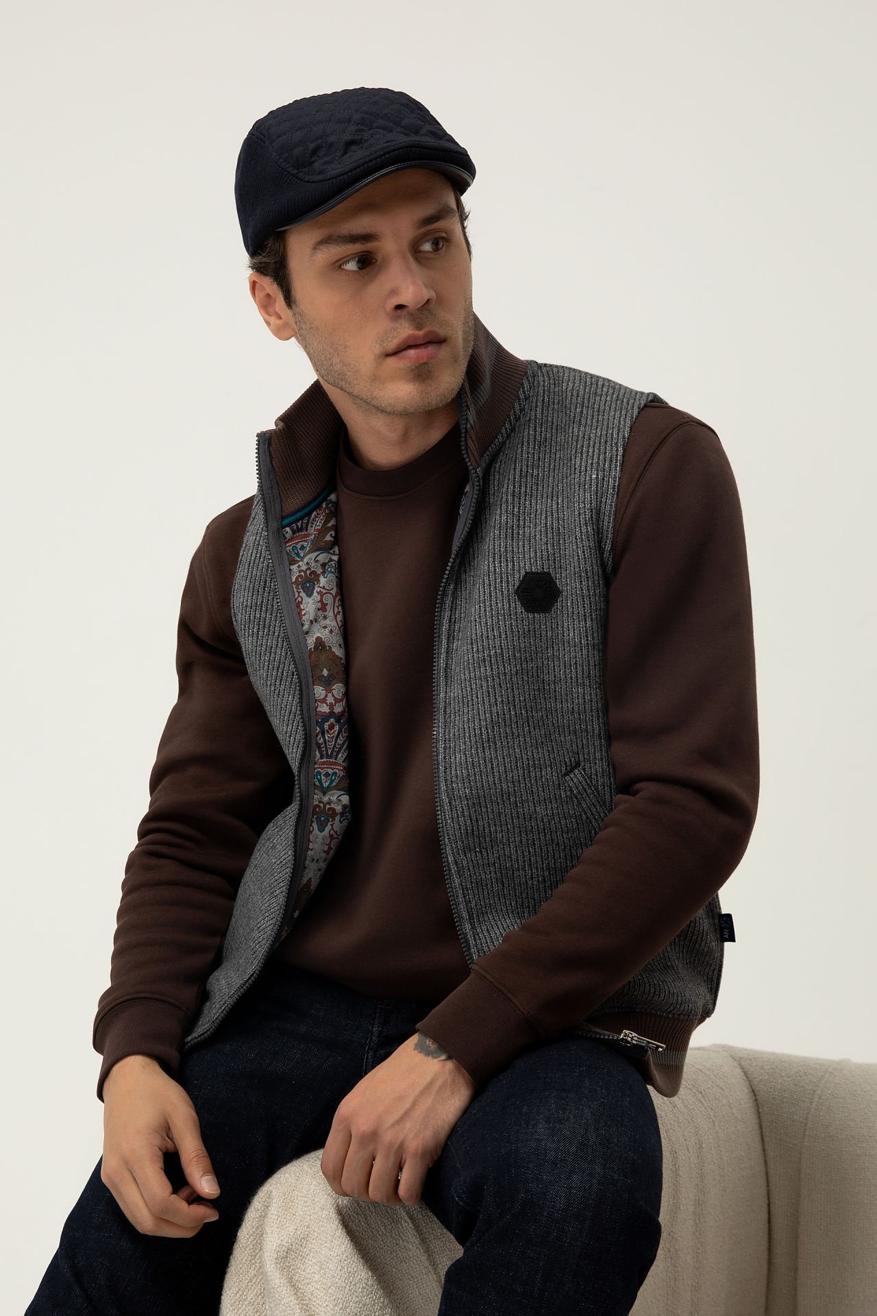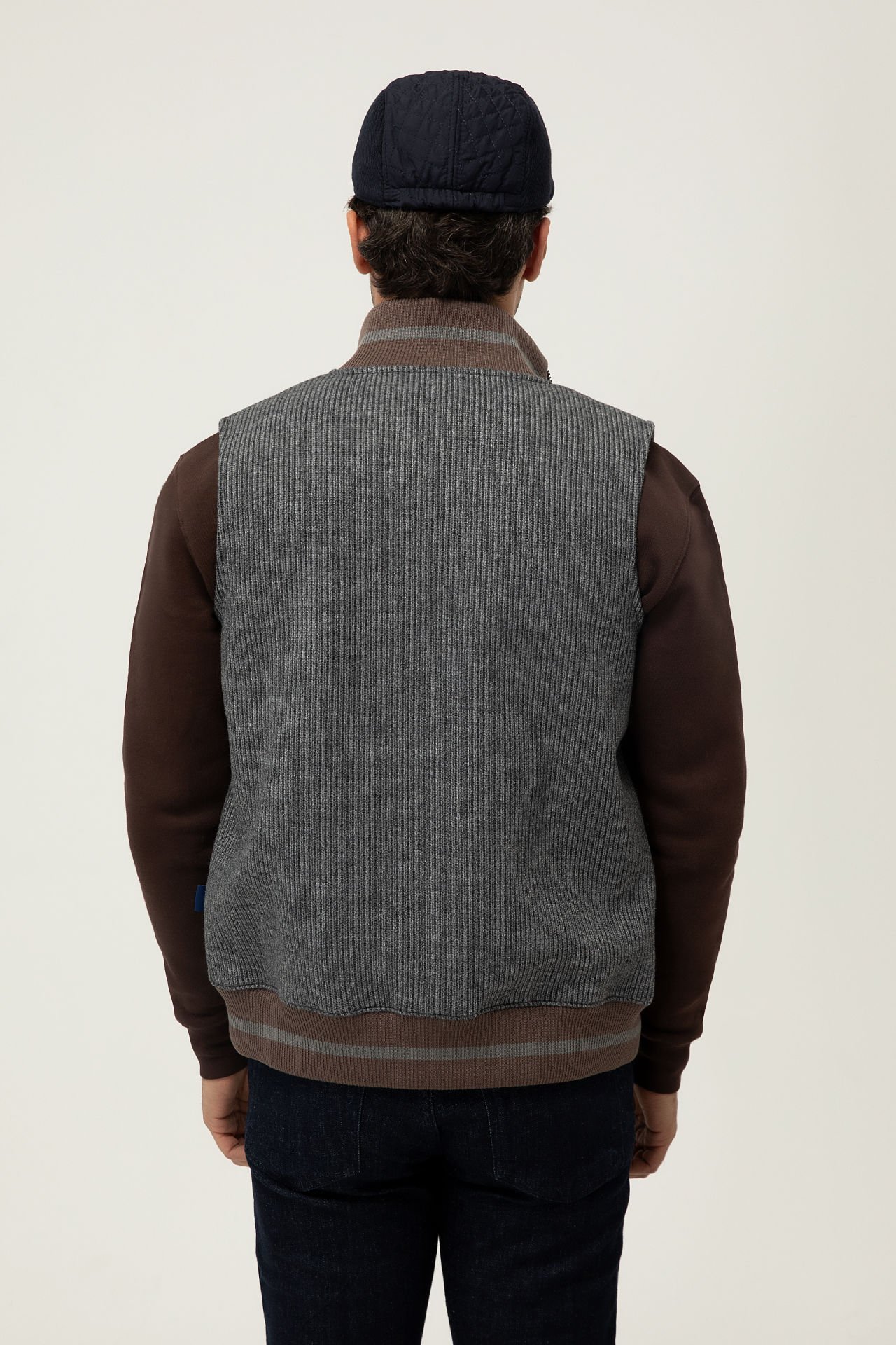 Modern ve dinamik bir katmanlama parçası olan bu gri triko yelek, yün karışımlı dokusu sayesinde yumuşaklık ve sıcaklık sunar. Fermuarlı ve yüksek yaka tasarımı, soğuk havalarda koruma sağlarken, yeleğin nervürlü (rib) detayları şık ve sportif bir görünüm yaratır. Kolay kombinlenebilir gri rengi ile hem günlük hem de daha resmi casual kombinleriniz için ideal bir tamamlayıcıdır.