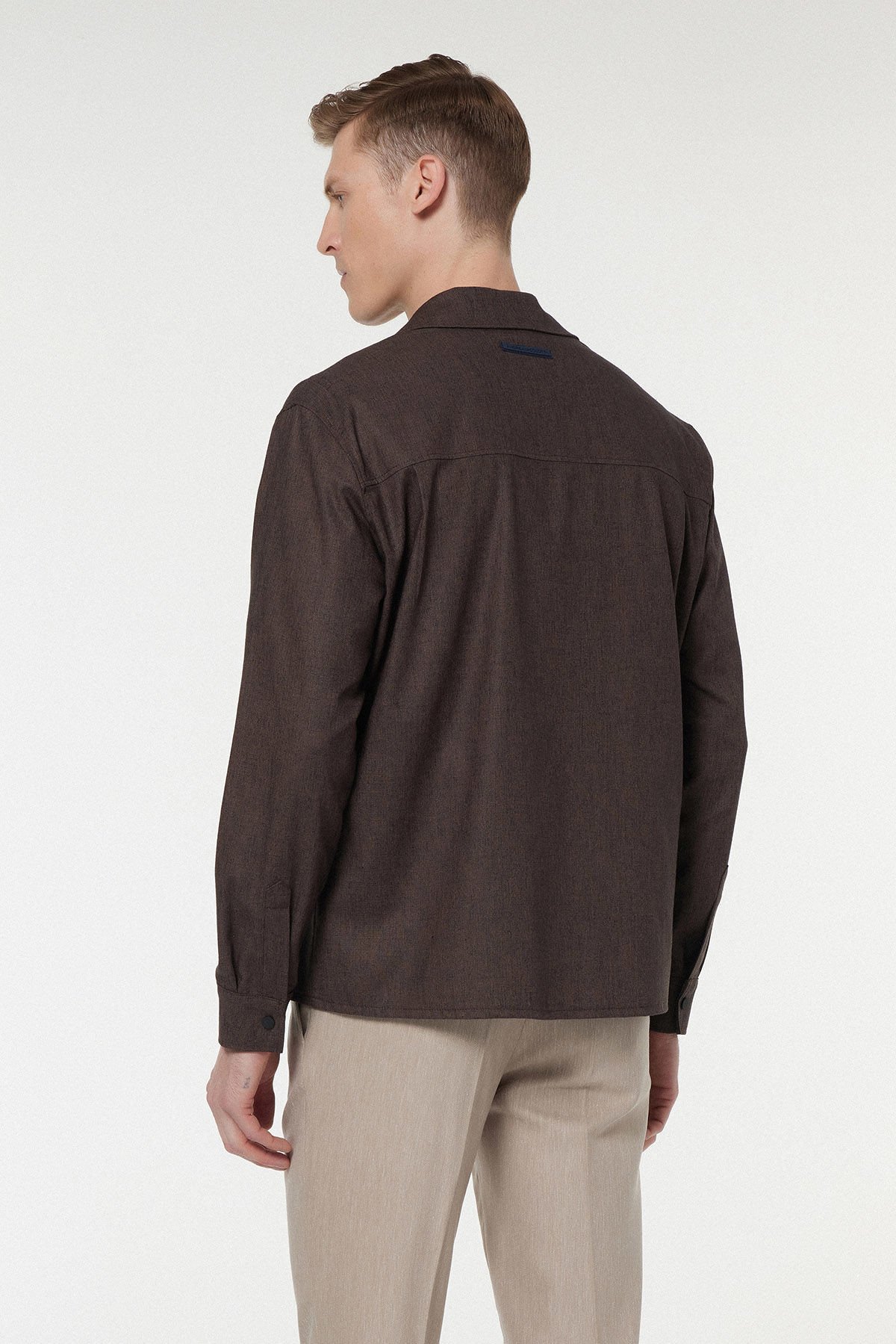Sonbahar ve kış gardıroplarının vazgeçilmezi olan bu parça, ceket ve gömlek arasındaki fonksiyonel boşluğu doldurur. Zengin, sıcak kahverengi tonu ve kumaşının melanj dokusu, ürüne derinlikli bir sonbahar estetiği kazandırır. %48 Keten içeriği sayesinde iç mekanlarda veya katmanlı giyimde nefes alabilirlik sağlarken; Polyester ve %2 Elastan karışımı, ürüne modern bir tokluk ve hareket esnekliği kazandırır. Regular Fit kesimi ile sade bir silüet oluşturur ve eforsuz şıklığın anahtar parçasıdır.