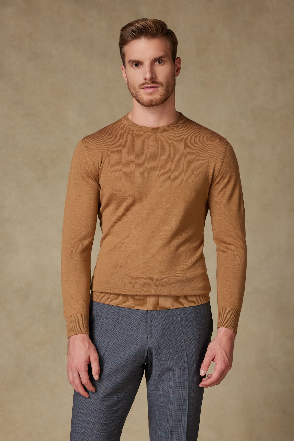 Bu camel rengindeki bisiklet yaka triko, %50 Yün ve %50 Akrilik karışımı sayesinde yumuşak, sıcak tutan ve dayanıklı bir yapıya sahiptir.