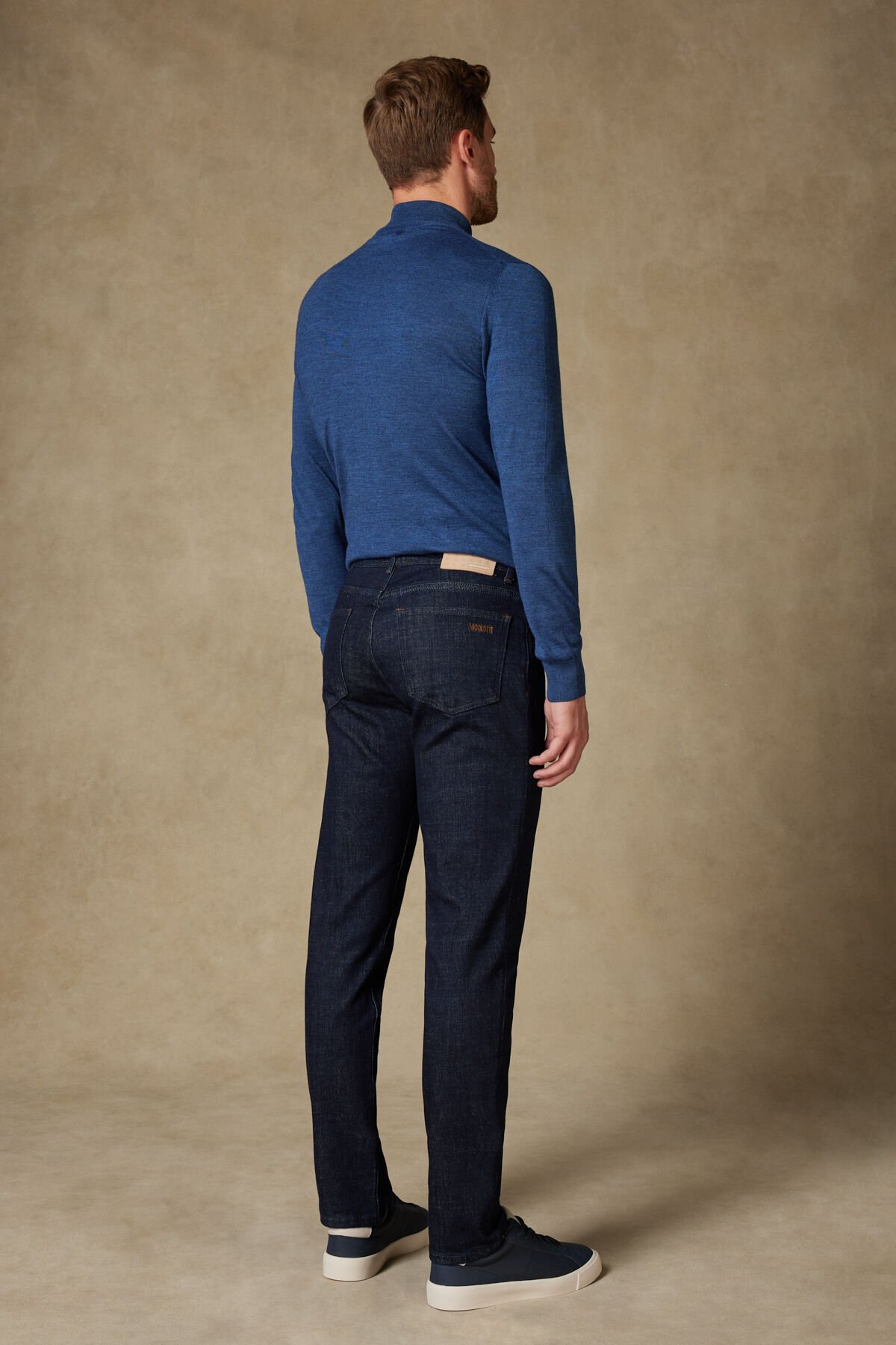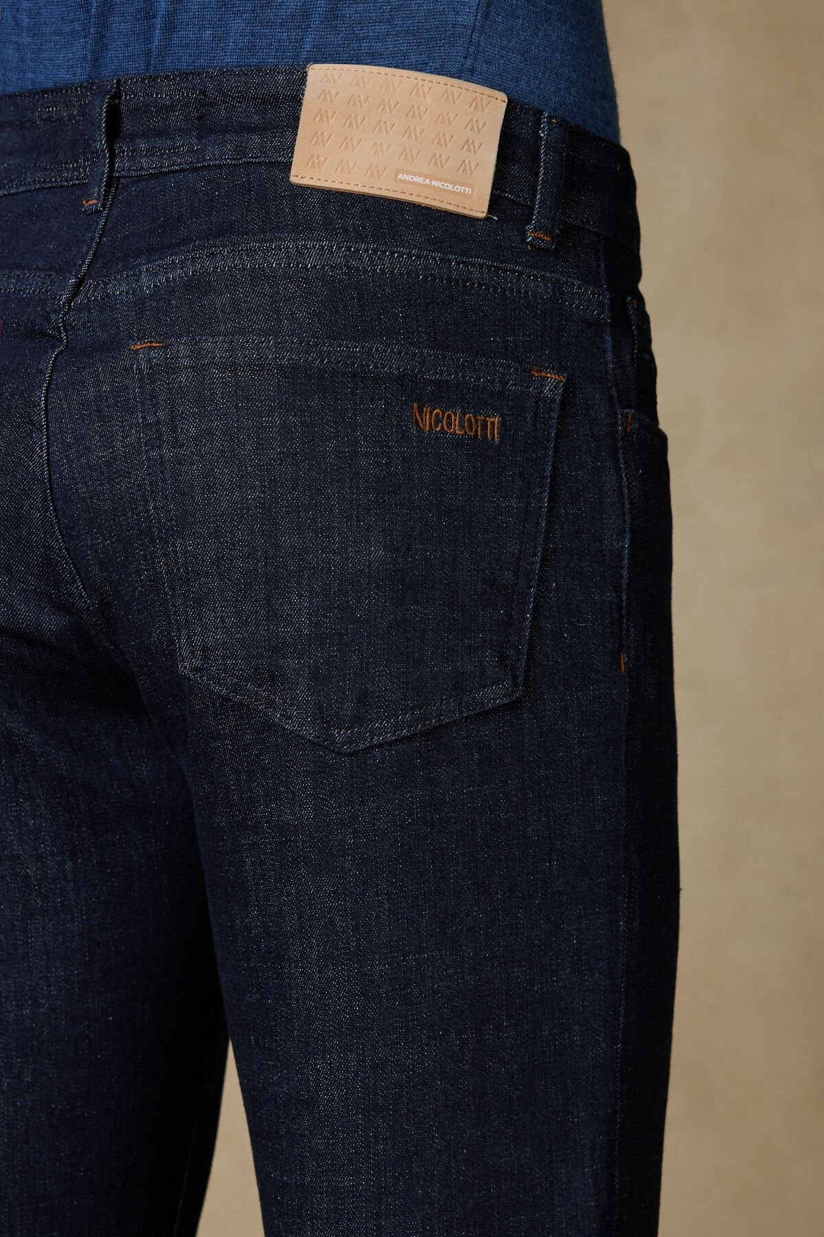 Andrea Nicolotti’nin Modern Regular Fit Kesimli Lacivert Jean Pantolonu, klasik denim şıklığını üst düzey konforla birleştirir. Esnek yapısı sayesinde gün boyu hareket özgürlüğü sağlar ve rahat bir kullanım sunar.