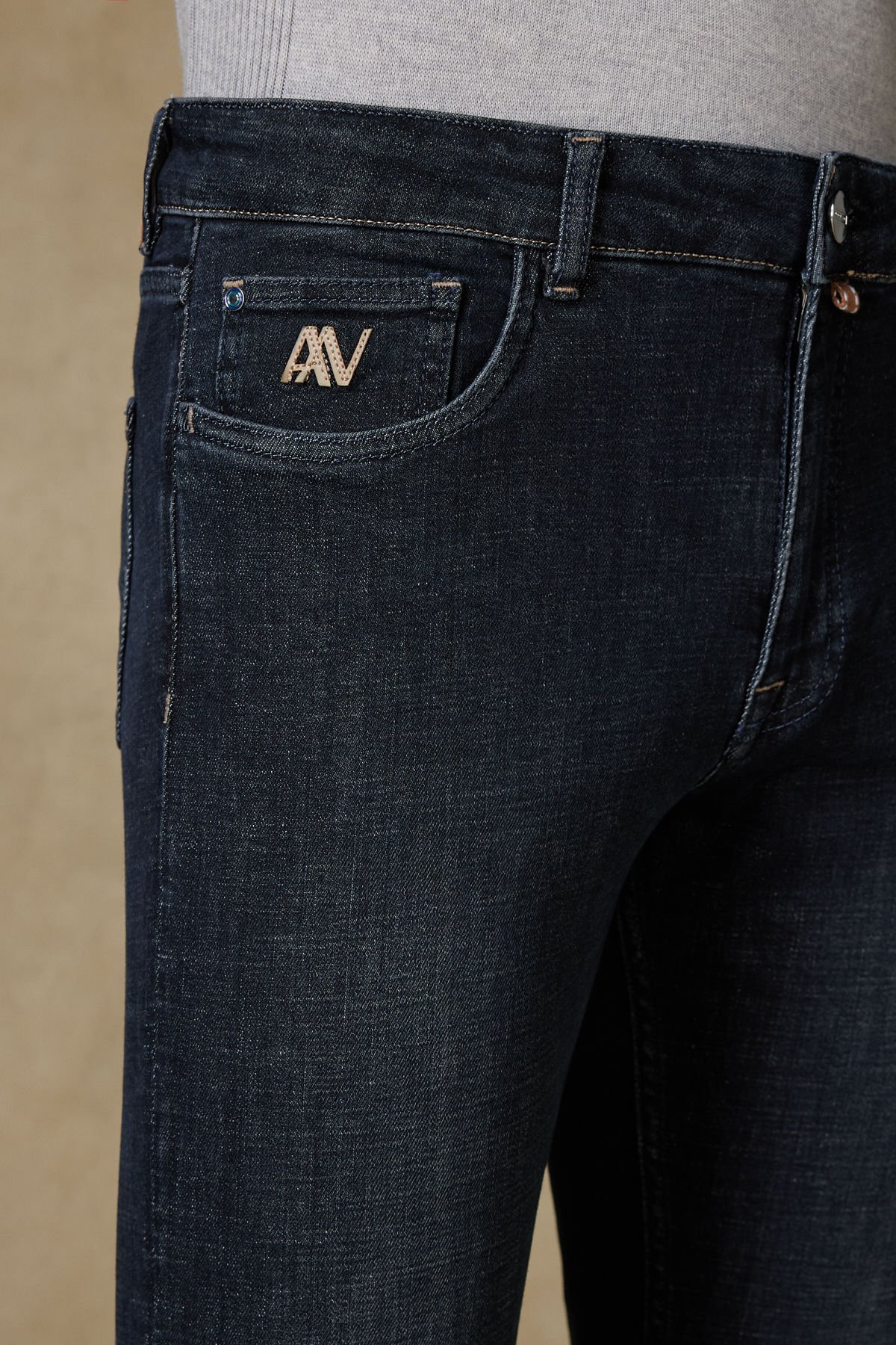 Kumaş üzerindeki koyu lacivert (Dark Wash) görünümü, temiz, modern ve sofistike bir estetik sunar. Yüksek oranda Pamuk (%98) ve eklenen %2 Elastan ile dayanıklılığı ve esnekliği artırılmıştır. Klasik 5 cep detayına sahip olan pantolonun, arka cep üzerindeki deri yama etiketi ve minimal işlemeler, markanın kaliteli ve özenli işçiliğini vurgular.