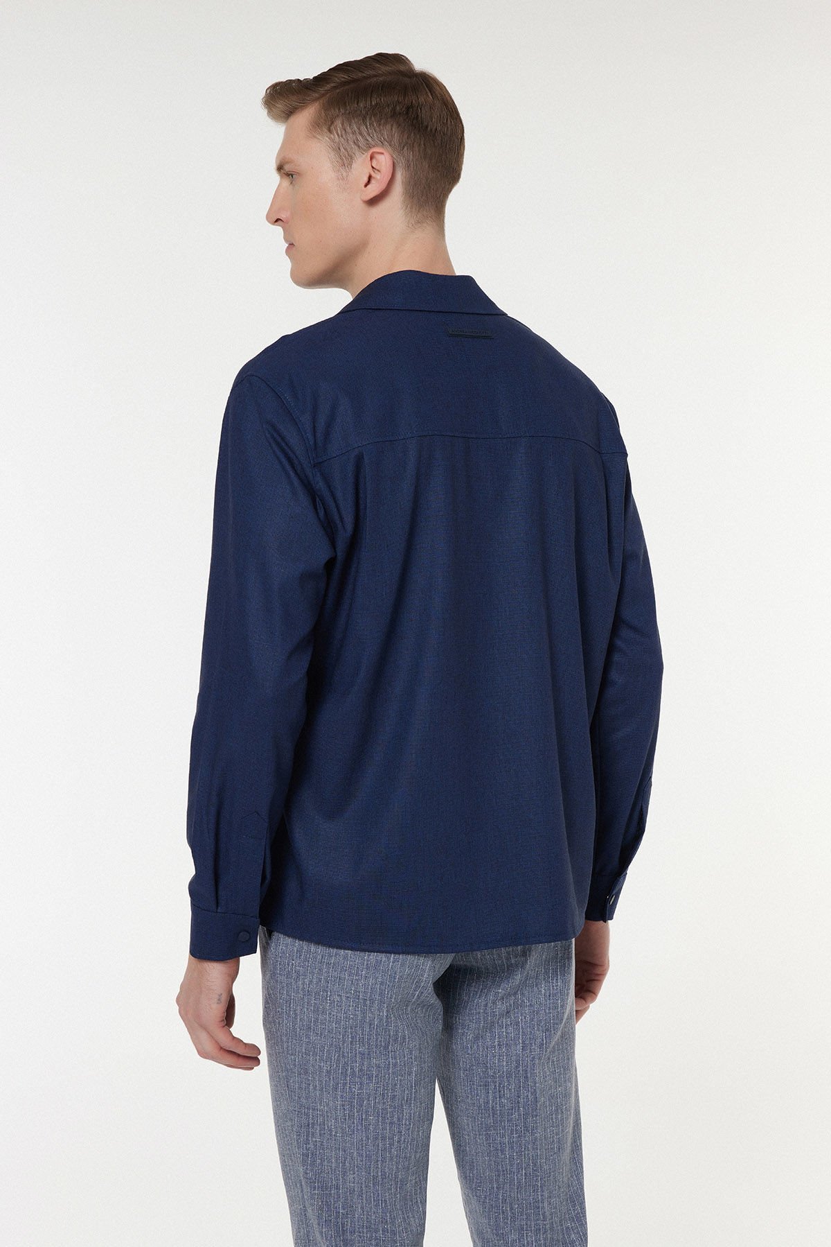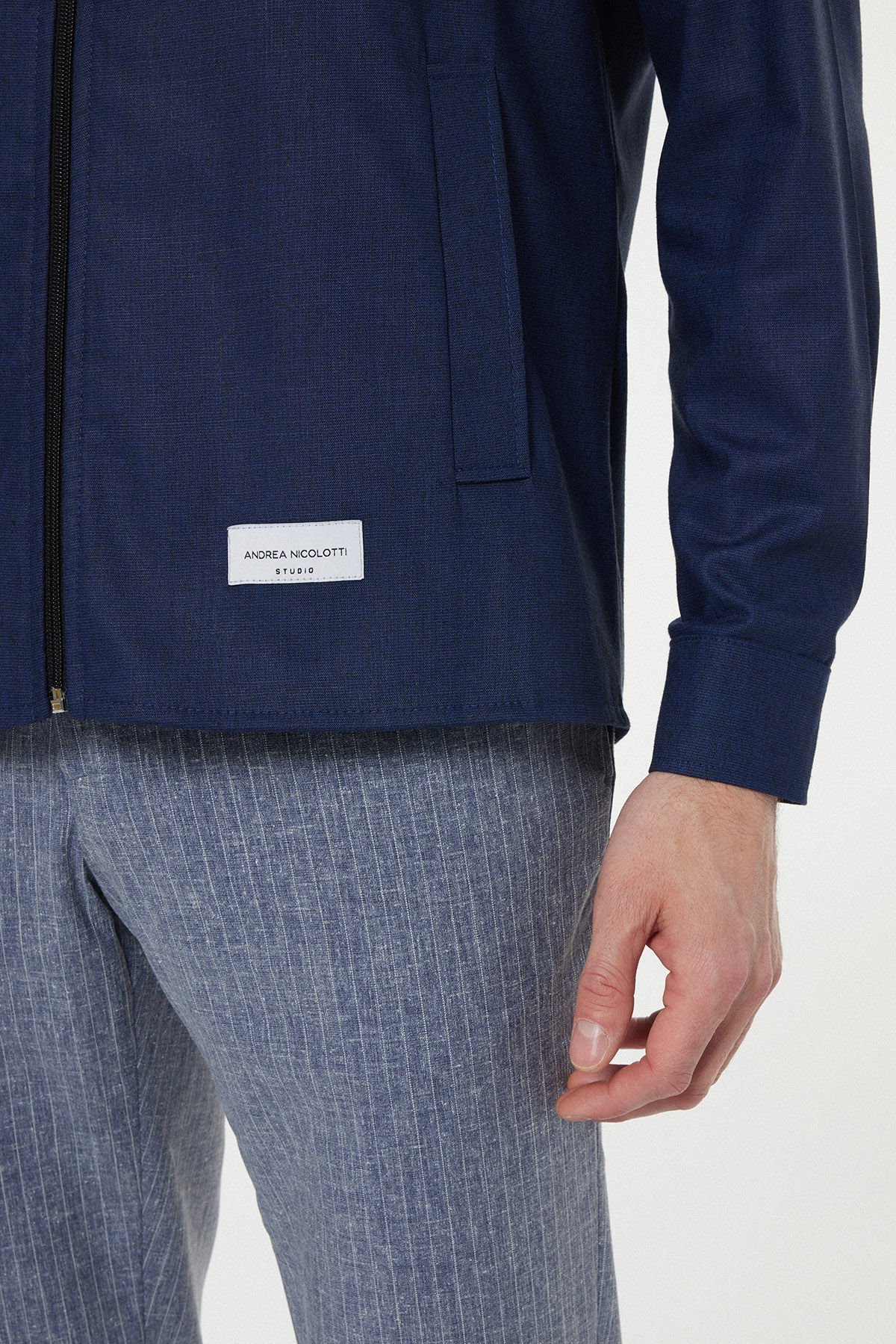 Erkek giyiminde klasikler arasına giren, çok yönlü bir katmanlama parçası. Bu ceket gömlek, geleneksel gömlek yakasını metal fermuarın modernliğiyle buluşturarak sade ve sofistike bir duruş sunar. Zamansız lacivert rengi, kumaşın dokusuyla birleştiğinde zengin ve derin bir görünüm oluşturur. Yüksek keten içeriği sayesinde nefes alabilirlik ve doğal bir his sağlarken; polyester ve %2 Elastan karışımı, ürüne tokluk, dayanıklılık ve hareket esnekliği kazandırır. Regular Fit kalıbı ile dört mevsim şık ve konforludur.