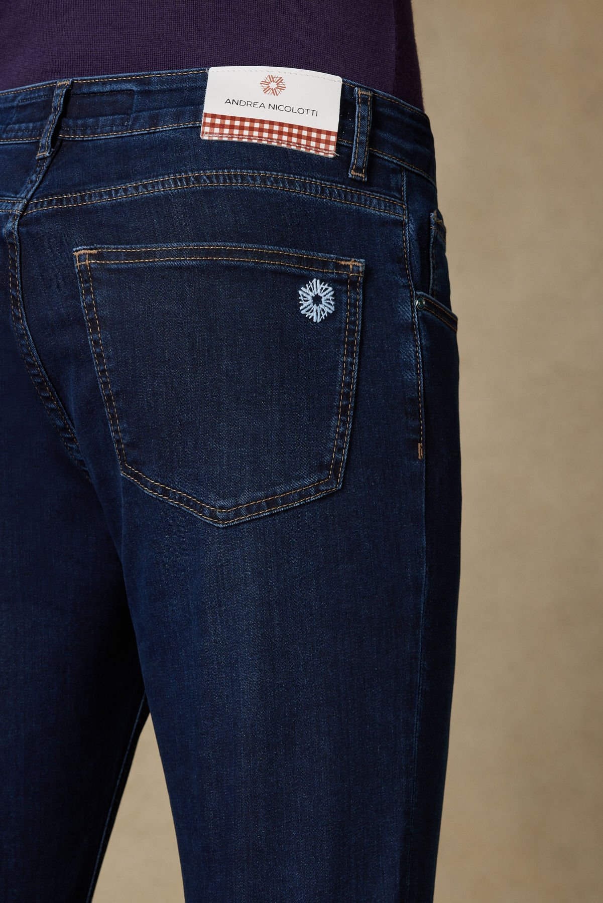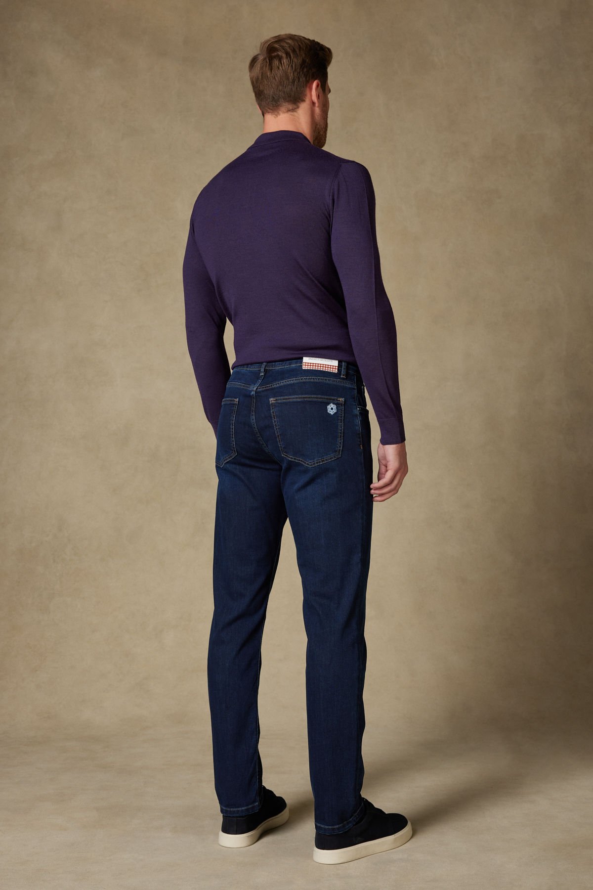 Andrea Nicolotti'nin Modern Regular Fit Kesimli Lacivert Jean Pantolonu, klasik denim şıklığını üst düzey konforla birleştirir. Kumaş üzerindeki koyu lacivert (Dark Wash) görünümü, ürüne modern ve sofistike bir estetik sunar. Esnek yapısı sayesinde gün boyu hareket özgürlüğü sağlar ve rahat bir kullanım sunar. Klasik 5 cep detayına sahip olan bu pantolon, günlük ve casual kombinlerinizin kurtarıcı parçasıdır.