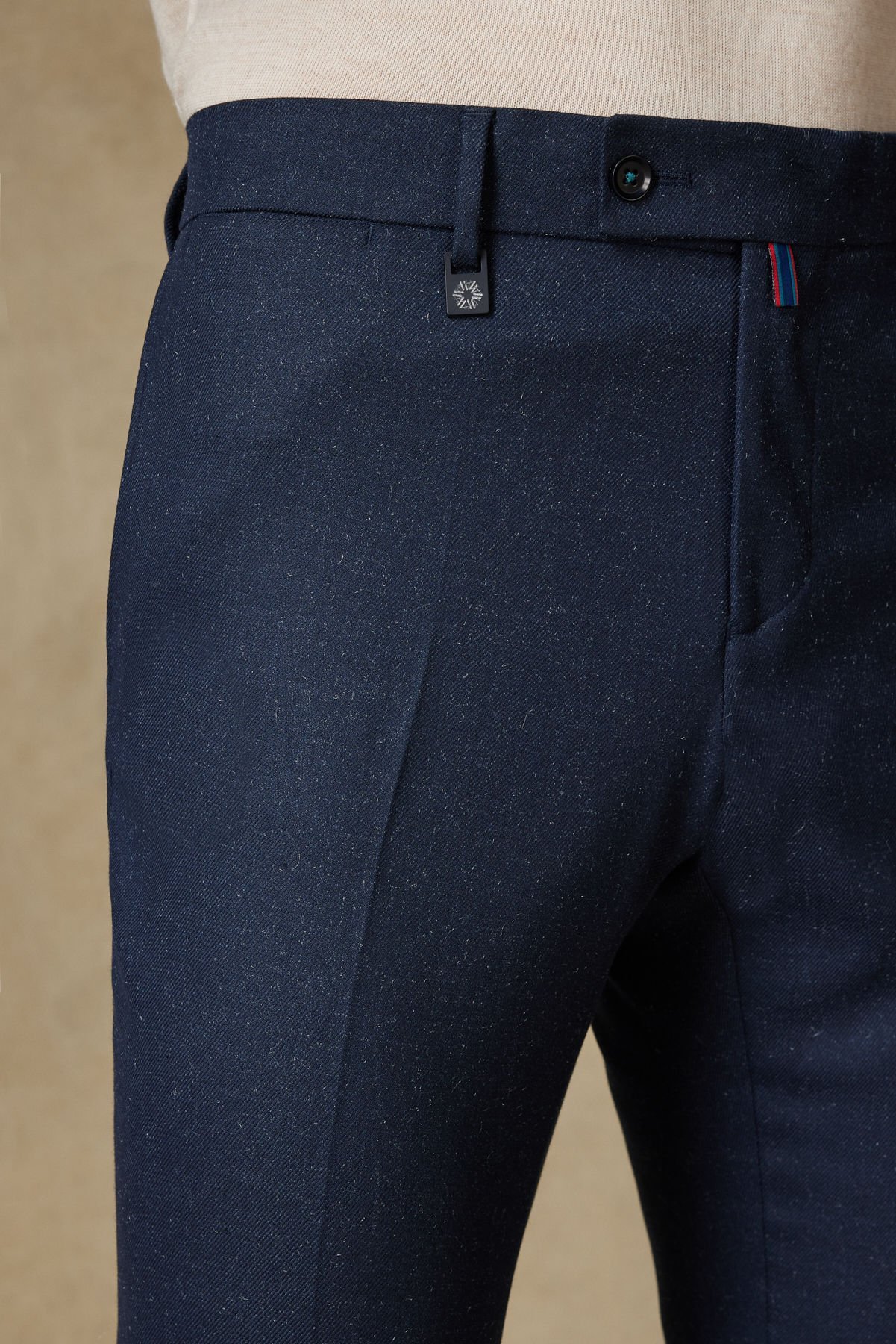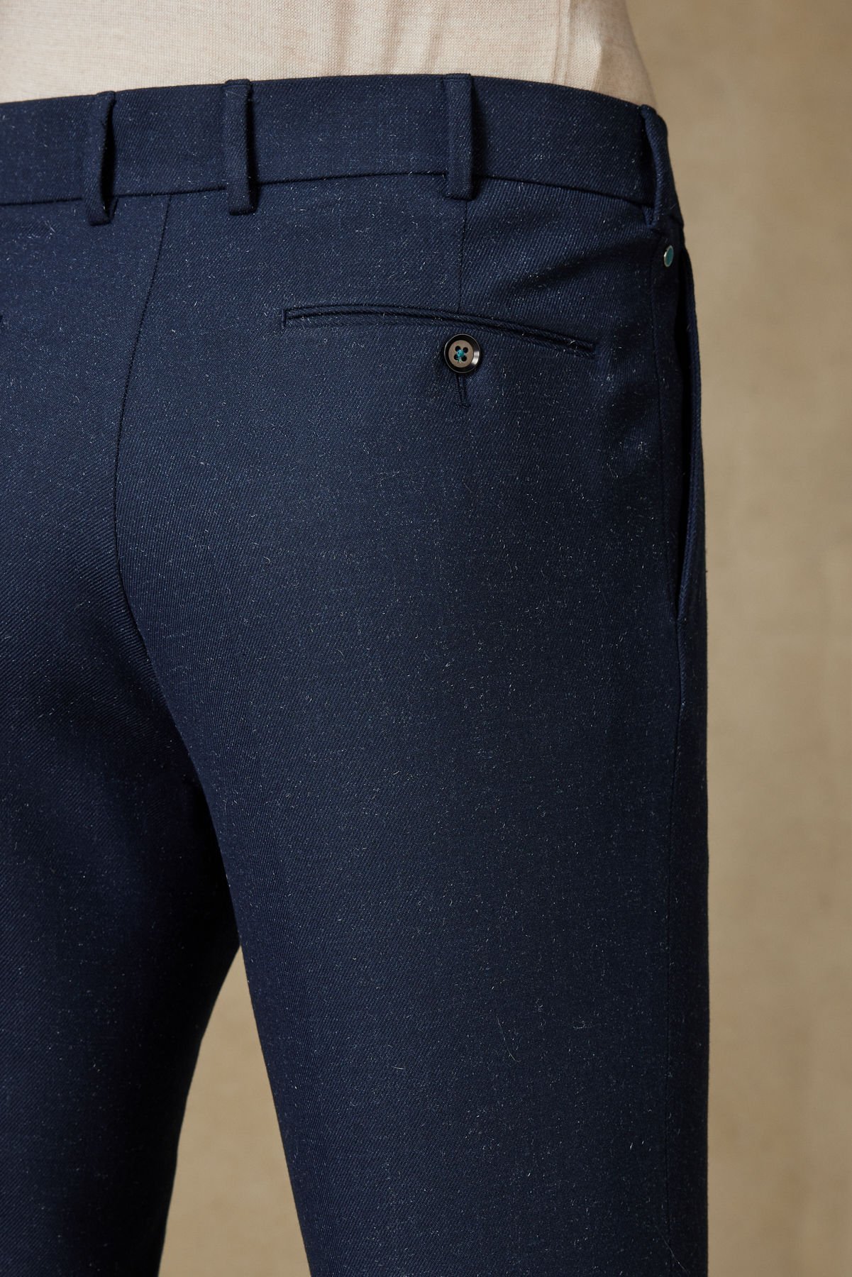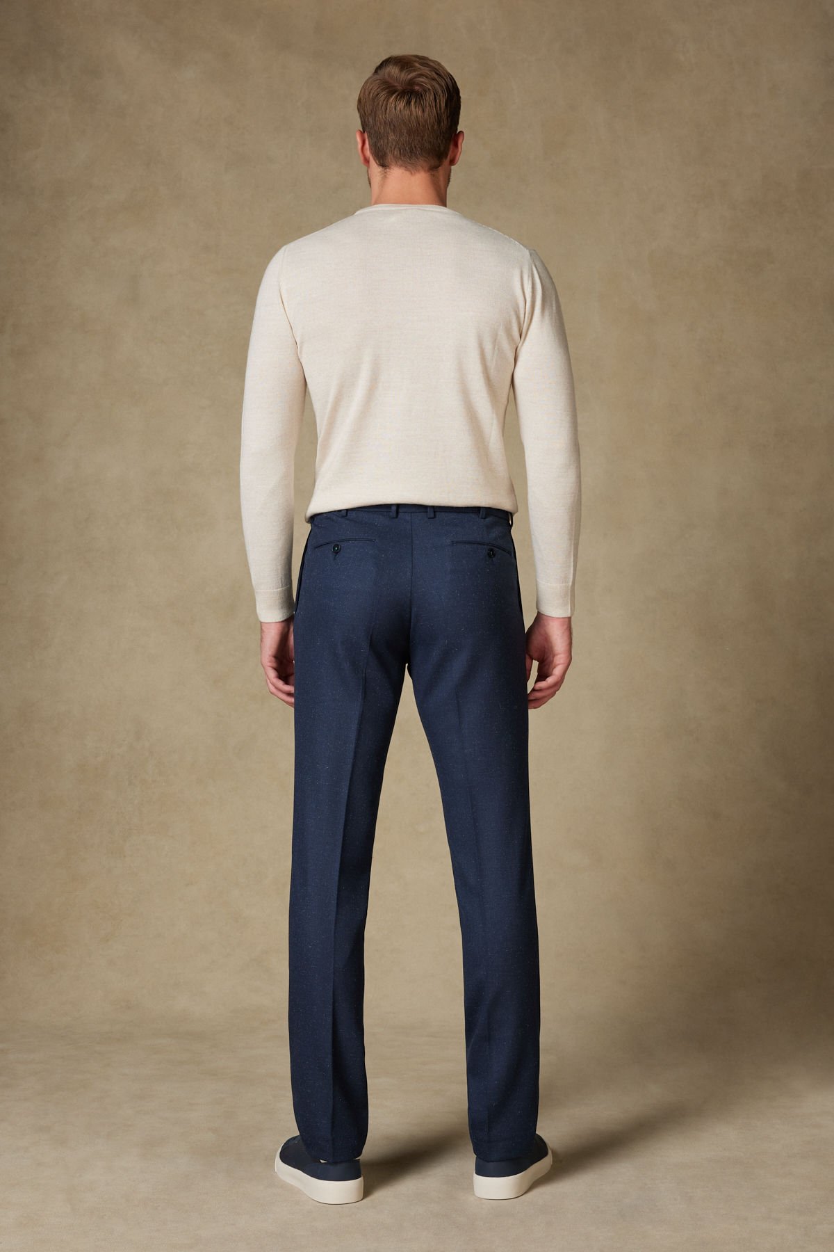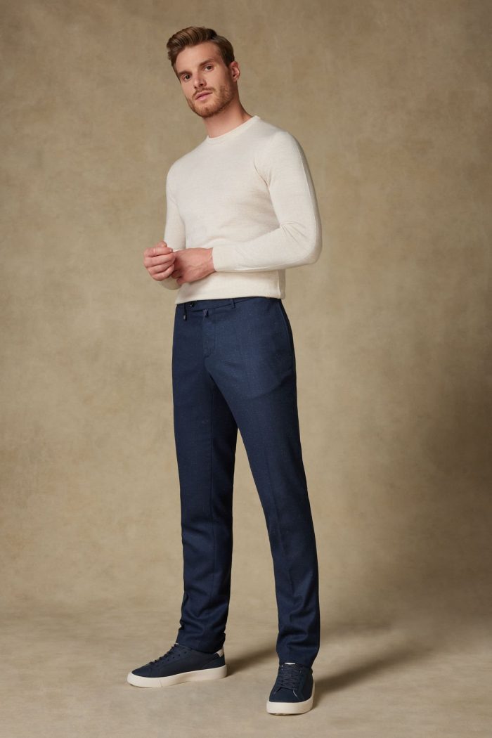 Bu lacivert yün pantolonu farklı ortamlarda dengeli ve şık bir şekilde kombinleyebilirsiniz: