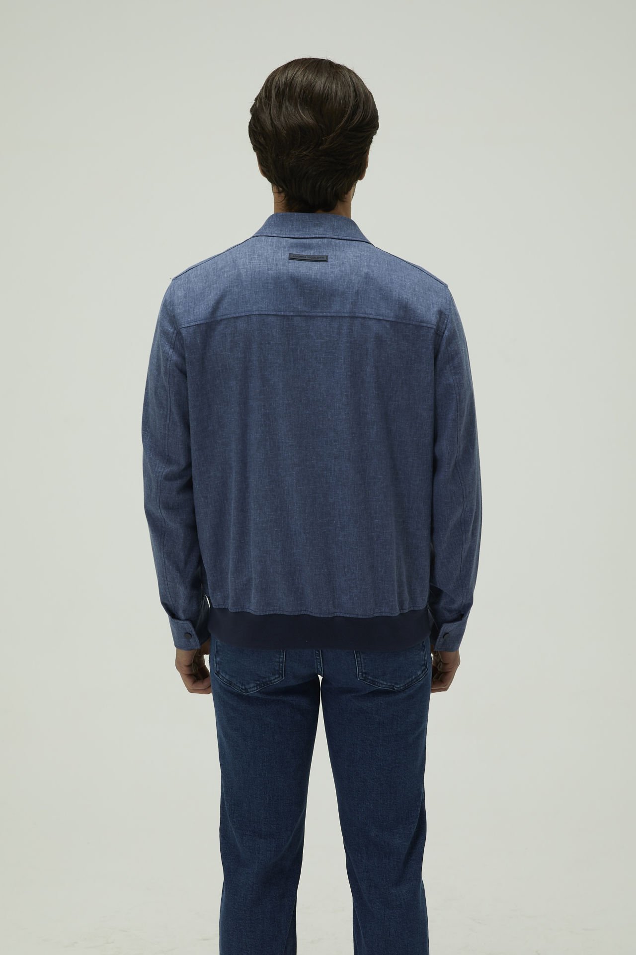 Mevsim geçişlerinin ve serin yaz akşamlarının kurtarıcı parçasıdır. Klasik gömlek yaka estetiğini tam boy metal fermuarın modern pratikliğiyle birleştiren bu hafif mont, işlevsellikten ödün vermeden şıklığınızı tamamlar. Kumaşının yüksek keten içeriği sayesinde nefes alabilirlik konusunda iddialıdır, sizi rüzgardan korurken aşırı ısınmayı önler. Mavi tonu, teknik dokusuyla birleşerek ürüne dinamik ve zengin bir görünüm katar. Regular Fit kesimi ile gün boyu katmanlama rahatlığı sunan vazgeçilmez dış giyiminiz olacaktır.