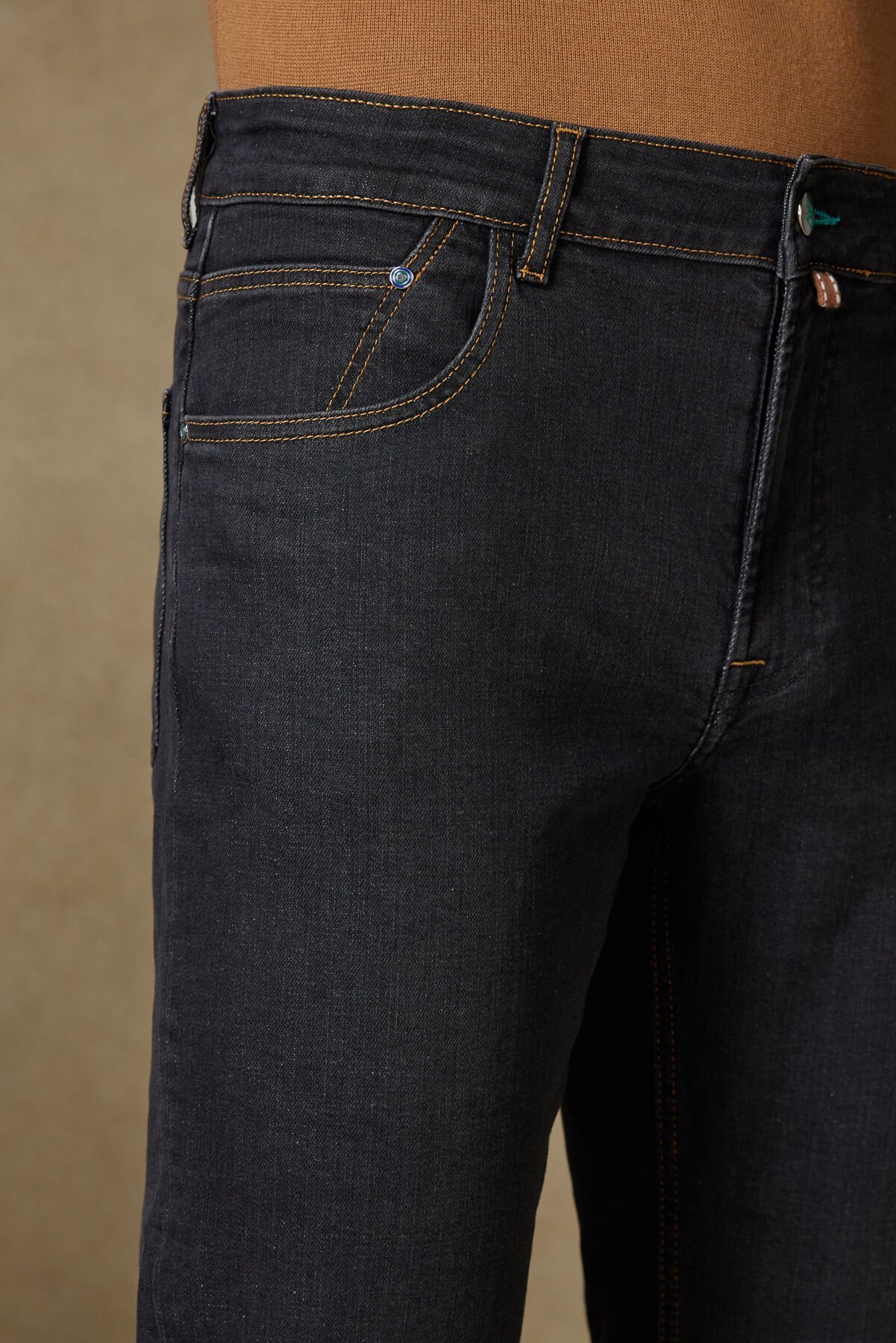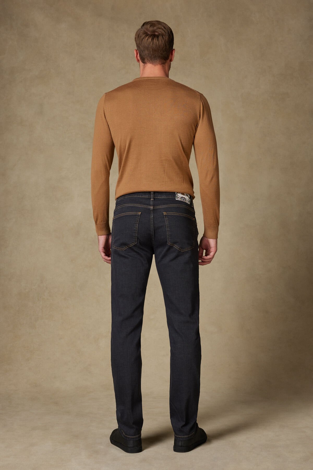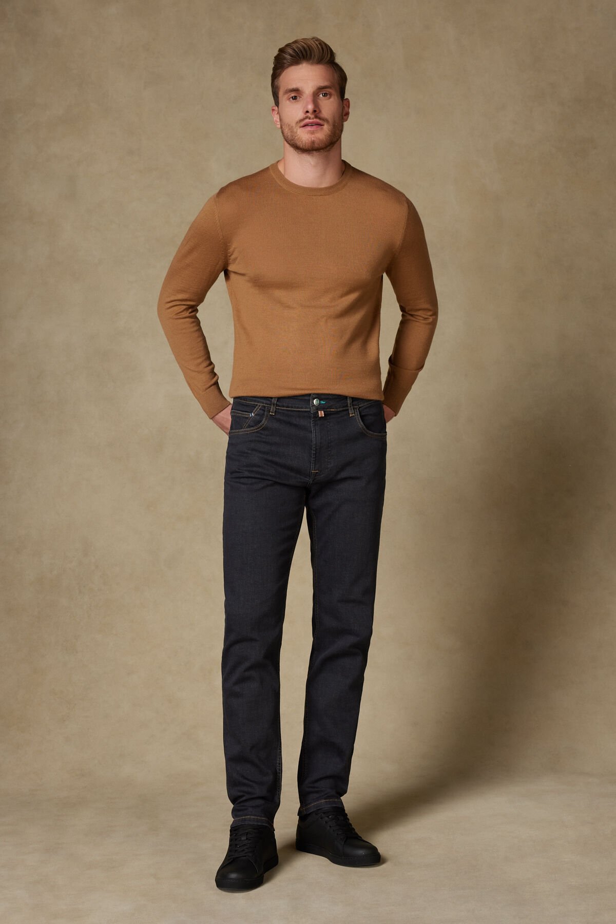 Andrea Nicolotti’nin Modern Regular Fit Kesimli Orta Mavi Jean Pantolonu, klasik denim şıklığını üst düzey konforla birleştirir. Esnek yapısı sayesinde gün boyu hareket özgürlüğü sağlar ve rahat bir kullanım sunar.