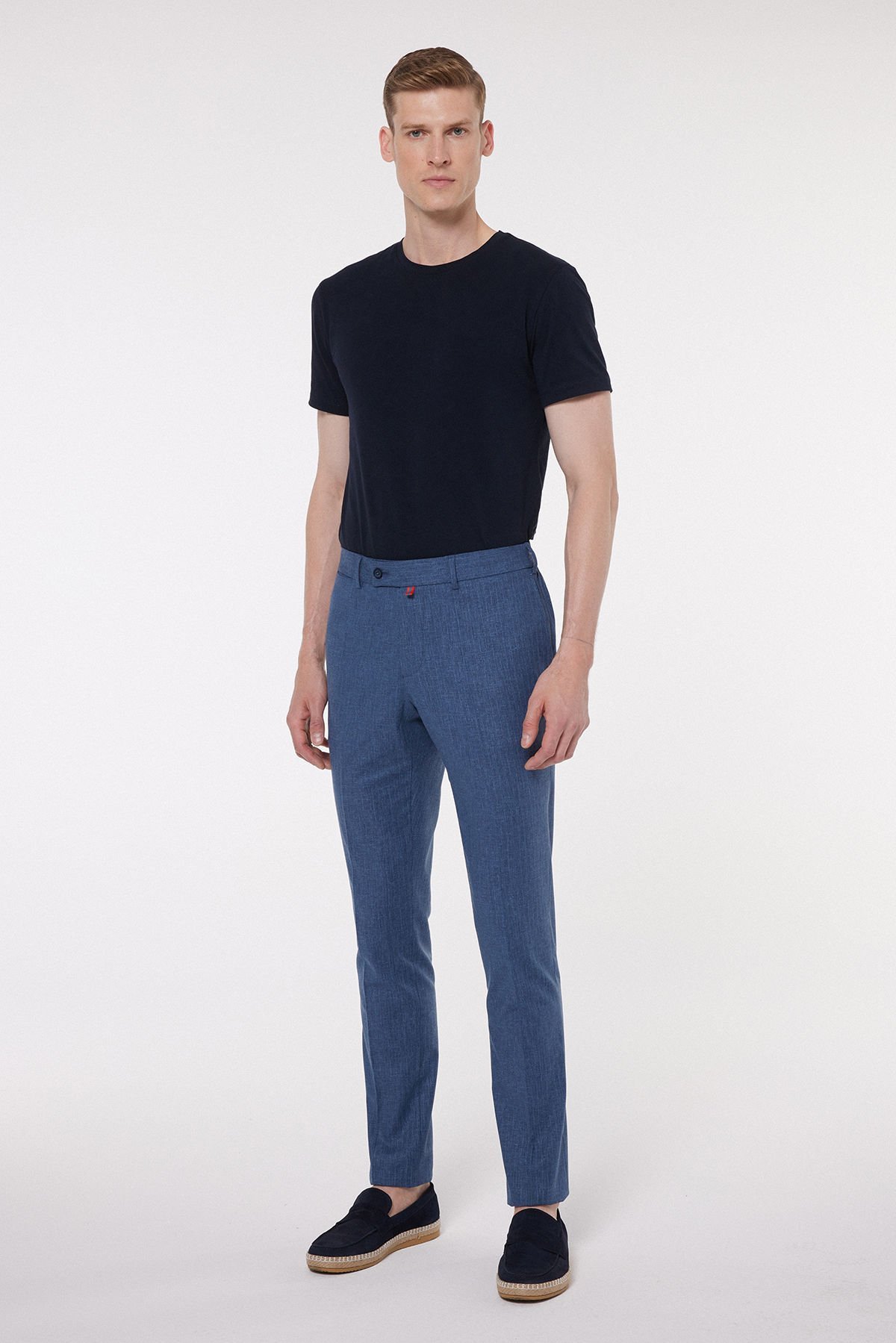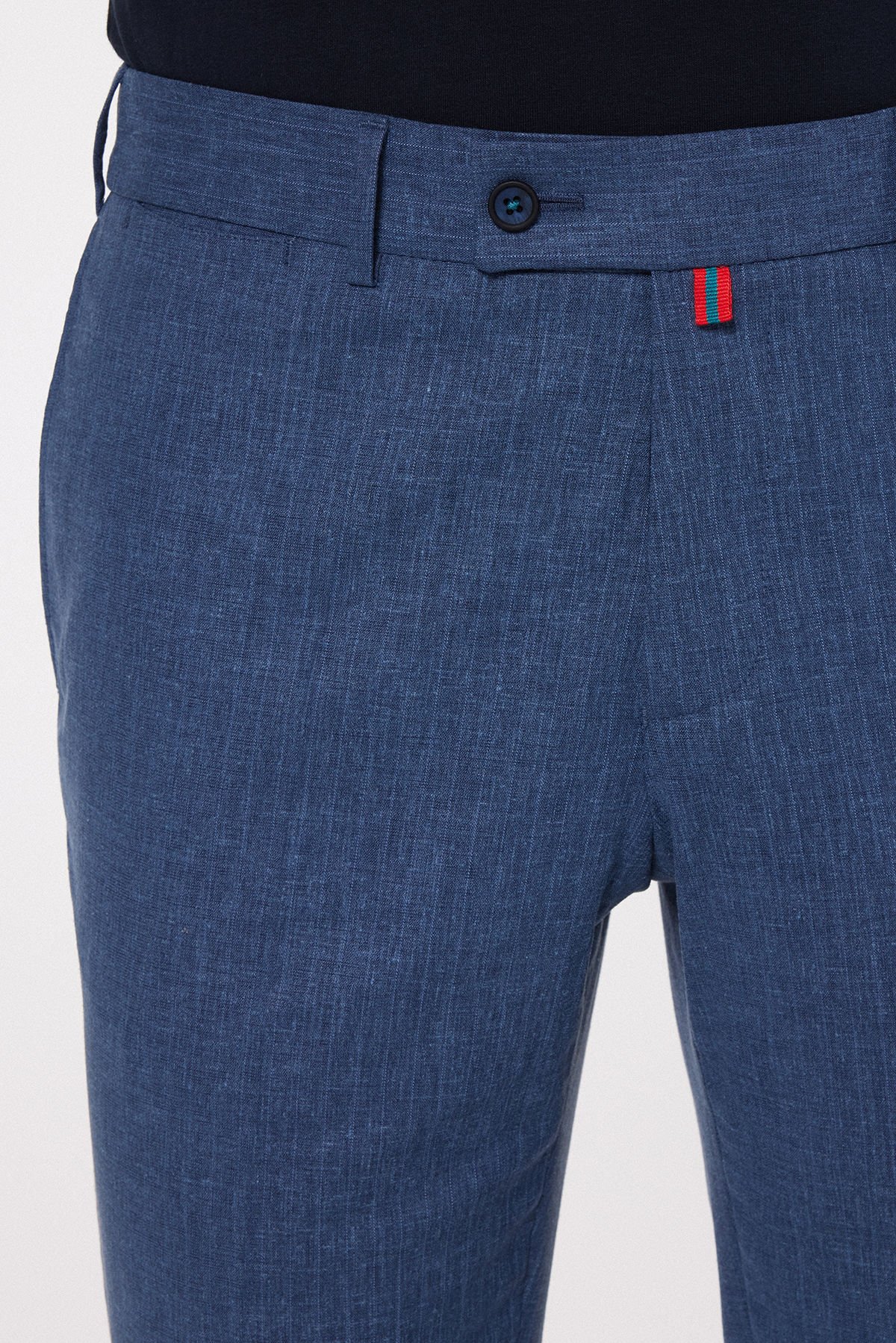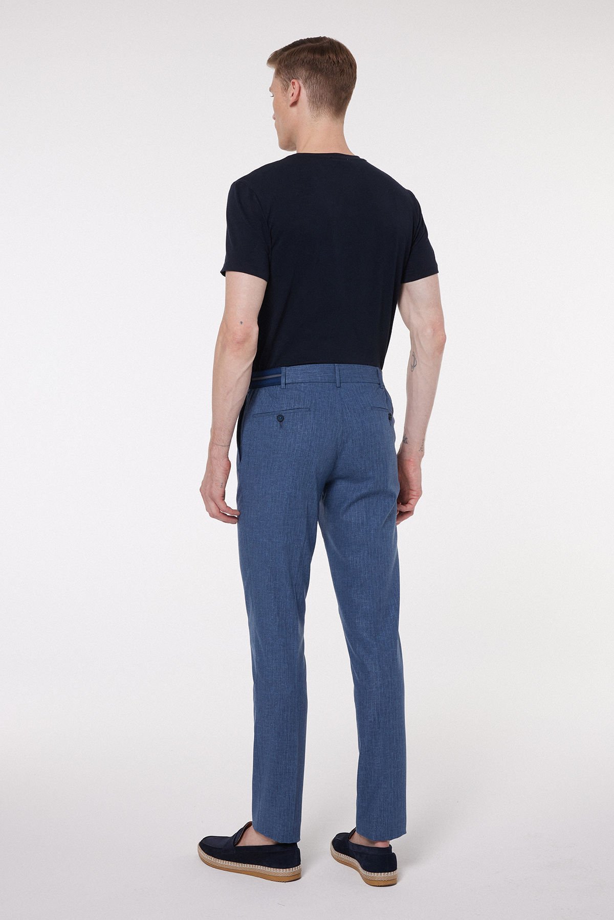 Klasik kumaş pantolon zarafetini günümüzün konfor teknolojisiyle harmanlayan bu petrol mavisi parça, gardırobunuzun en işlevsel parçalarından biri olmaya aday. %48 Ketenin doğal nefes alan ve hafif dokusuna, %50 Polyesterin dayanıklılığı ve %2 Elastanın esnekliği eklenmiştir. Bu özel karışım sayesinde pantolon, hem ofis şıklığını korur hem de gün boyu kısıtlanmamış hareket özgürlüğü sunar. Bel kısmındaki gizli lastik detayı, konforu bir üst seviyeye taşır.