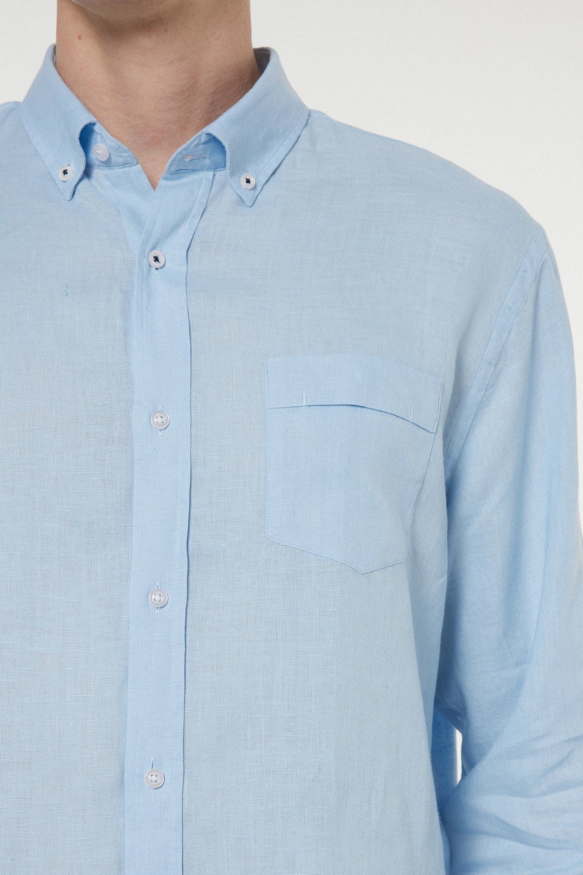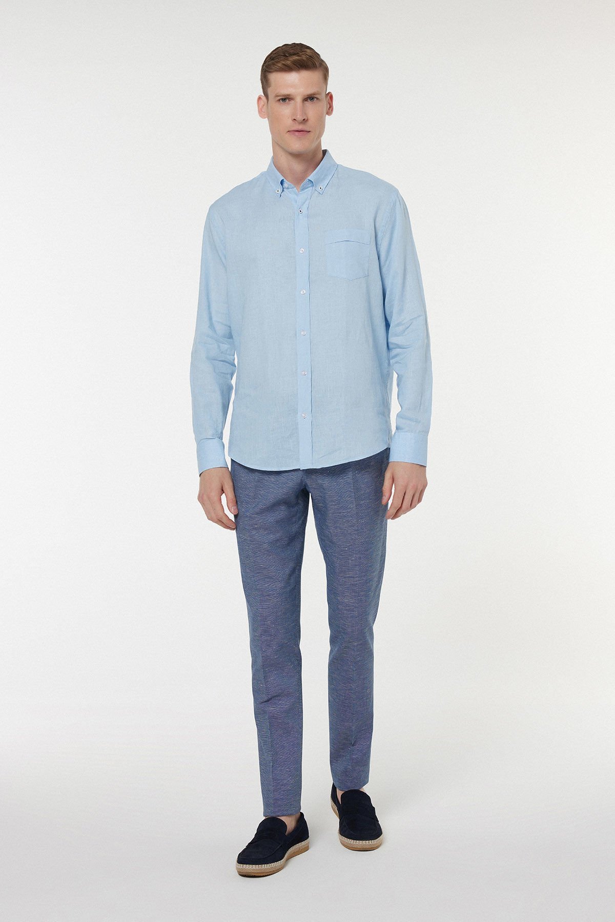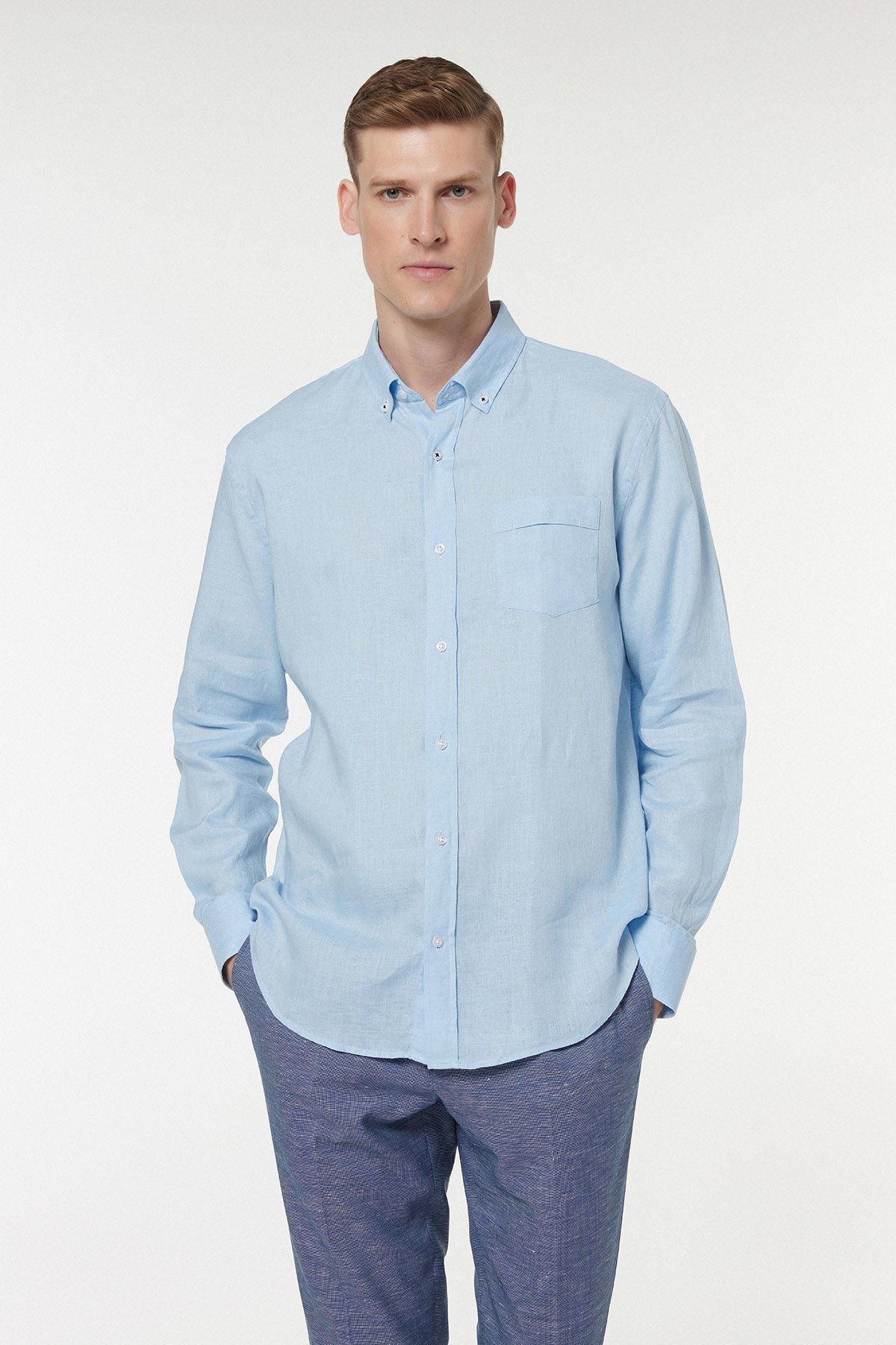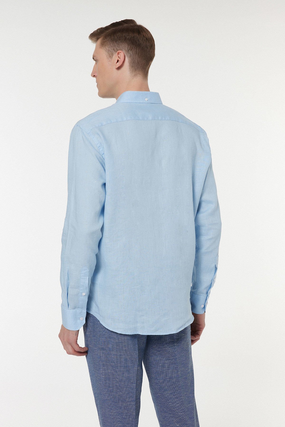 Yaz ve bahar aylarının vazgeçilmezi olan bu Gök Mavi keten gömlek, üstün konforu ve zamansız şıklığı bir arada sunar. %100 saf keten liflerinden dokunan kumaş, yüksek nefes alabilirlik özelliği sayesinde sıcak havalarda cildinizin serin kalmasına yardımcı olurken, kendine has doğal ve tok dokusu ile lüks bir his yaratır. Klasik düğmeli yaka detayı, gömleğin hem rahat hem de Smart-Casual kombinler için ideal bir yatırım parçası olmasını sağlar. Gardırobunuzda her zaman ferah ve asil bir duruş sergileyecek temel bir parçadır.